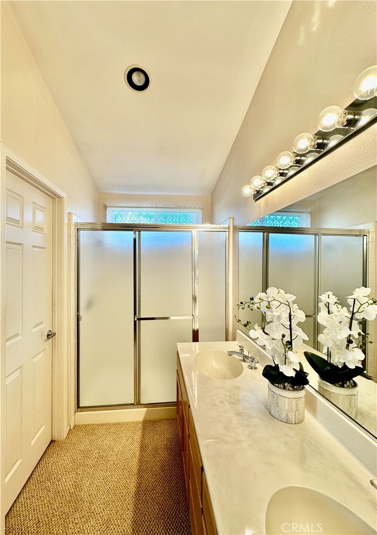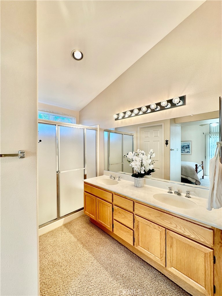 The generously sized master suite offers a tranquil retreat with an en-suite bathroom featuring dual vanities, a walk-in shower, and a spacious walk-in closet. Two additional bedrooms are perfect for guests, hobbies, or a home office, and share a second full bathroom.