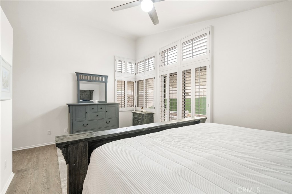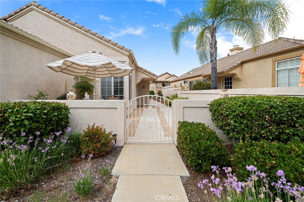 ** Assumable VA loan at 4% rate!!! (certain conditions apply) Charming, updated TURNKEY home in The Colony, a 55+ Resort Style Living community! This beautiful home is ready for its next owner to enjoy. 2 bedroom plus a den/office that could easily be a 3rd bedroom. PLANTATION SHUTTERS throughout and even on the top windows that help with keeping the home cooler and warmer that also bring a rich look to this home. Cozy Living Room with gas fire place. There is glorious newer neutral natural wood look LAMINATE FLOORING in living areas, bedrooms and dining areas with lovely tile in the entry and walkway to the kitchen and bathrooms. NEWER CEILING FANS with high ceilings bring an open feel to this floor plan. Lots of natural lighting and two SLIDERS to the covered patio area. Updated kitchen with all STAINLESS STEEL appliances, REFRIGERATOR INCLUDED, both gas and electrical hook-up for stove, and Corian counters and center island, along with pull out drawers in lower cabinets. Nice ceiling fans in every bedrooms, den, dining and kitchen areas. Master is a good size has slider to patio and a walk-in closet with beveled mirrors closet doors. Also in the guest bedroom there beveled mirrors closet doors and a good size guest bath. Inside laundry with both gas and electric hook-up. From the inviting front courtyard to the good size back patio and yard with concrete walkways around the whole home makes it for a very functional outside property. This home has fresh paint and is so clean, showing pride of ownership in the lovely community of THE COLONY with amazing amenities, Guard gated entry and 24-hour security patrol give you peace of mind in the heart of Murrieta. ** Assumable VA loan at 4% rate, certain conditions apply.