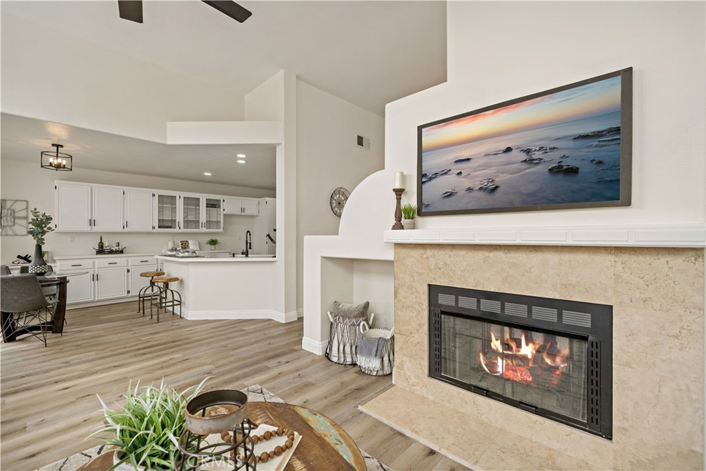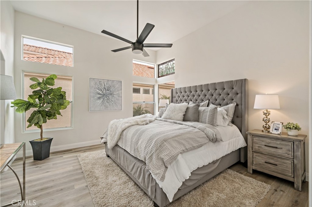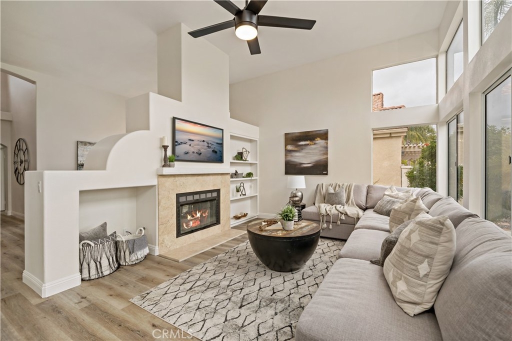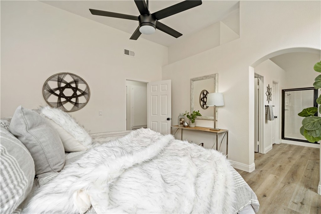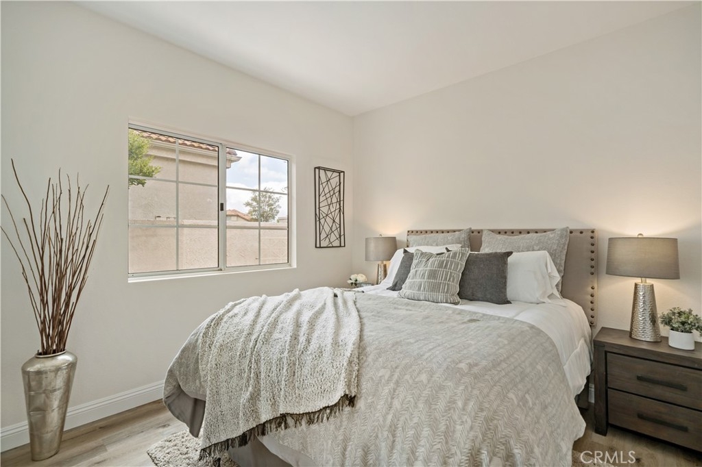 Located in the exclusive Guard Gated 55+ neighborhood known as "The Colony" at Cal Oaks, this new to market single level turnkey home offers an incredibly RARE floorplan while being completely reimagined inside. Some of the unique features of this sun drenched property include 12 foot ceilings through most of the home, a separate Living, Family & Dining Room PLUS an oversized 2.5 car garage w/ room for a golf cart or full on workshop! Measuring in at just shy of 1700 square feet, recent interior upgrades include Luxury Vinyl Plank Flooring (entire home), tall 5 inch baseboards, two tone interior paint colors and striking matte black fixtures & door hardware. Off the gated front courtyard is the formal entry, which leads to the Living Room boasting a slider to the side patio, double sided fireplace & built-in bookshelves. To the right of that is the formal Dining Room with a new chandelier, which could also also be converted to a Den / 3rd Bedroom. Next up is the LARGE gourmet kitchen, complete with white cabinetry, quartz countertops & stainless steel appliances + room for another small dining table in the breakfast nook. The family Room features another built in bookshelf, the other half of the double sided fireplace and a slider leading to your large private backyard w/ no homes directly behind! Side & Rear Patios offer multiple seating areas, a patio cover & low maintenance landscaping. Back inside, the hall bath has been renovated to include new hardware plus new quartz countertops, while the secondary guest bedroom has mirrored closet doors & again no carpet! The primary suite again offers those incredible 12 foot ceilings, and includes an en-suite bath complete w/ a new dual vanity, fixtures, large walk in shower w/ bench seat, toilet room & walk in closet. Off the hall is the indoor laundry room w/ cabinetry leading to your attached 2.5 car garage. This beautiful 55+ guard gated community has activities and amenities for everyone. Some of the amenities include a beautiful swimming pool, two spas, lighted tennis and pickleball courts, and an outdoor BBQ area for those outdoor enthusiasts. There's also a large clubhouse, large capacity banquet room with catering facilities, library, gym, atrium, game rooms and a hair & nail salon. This community even has a public golf course, all while being conveniently located near shopping, and has easy access to the freeway and medical facilities. Run don't walk, only 4 sales of this floorplan!