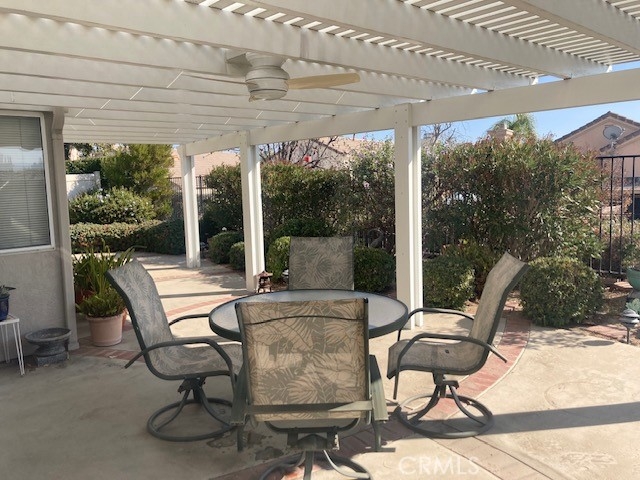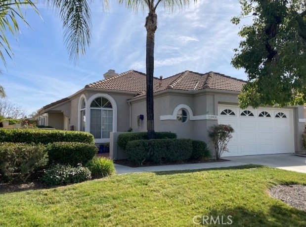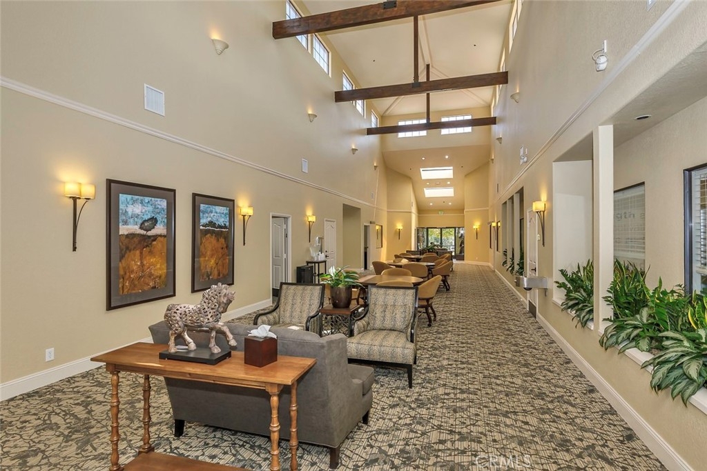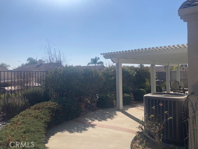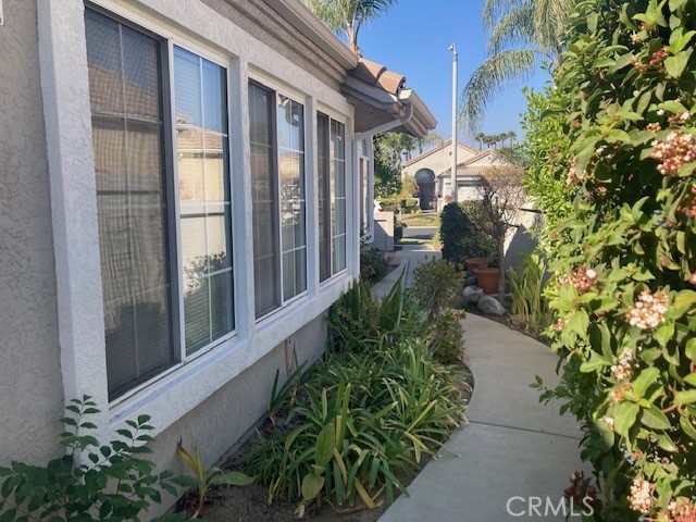 BEAUTIFUL single-story home with 2 bedrooms + a den/office, located in The Colony, one of SoCal's finest GATED SENIOR communities. The home was recently painted outside and boasts a NEW HVAC SYSTEM about 1 year ago. You will love the inviting front courtyard with brick accents. You enter to the living room with a fireplace and there is a spacious separate dining room. The kitchen has an island, lots of storage + additional eating with a cozy nook area. The primary bedroom has a sliding door to the patio, a walk-in closet and a large dual-sink bathroom. This popular plan has another guest bedroom plus an additional den/office. The guest bath is oversized with a tub/shower. There is a convenient indoor laundry room. You will enjoy your beautiful patio with brick accents, an aluminum cover, afternoon shade and views to a LARGE GREENBELT that is maintained by the HOA. Both sides of the home have clean concrete walkways. Your garage has room for 2 cars and a pull-down ladder for storage in the attic. This home is located on a quiet, curving street.