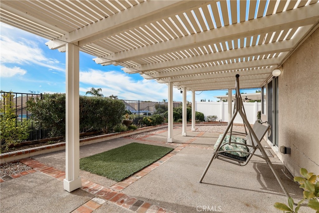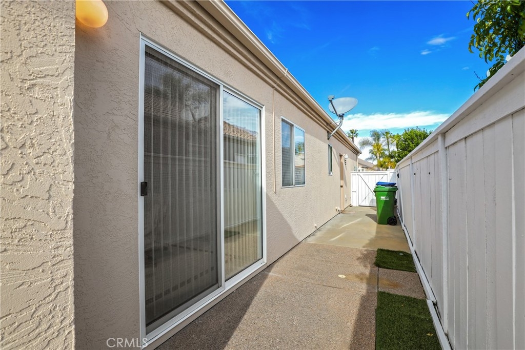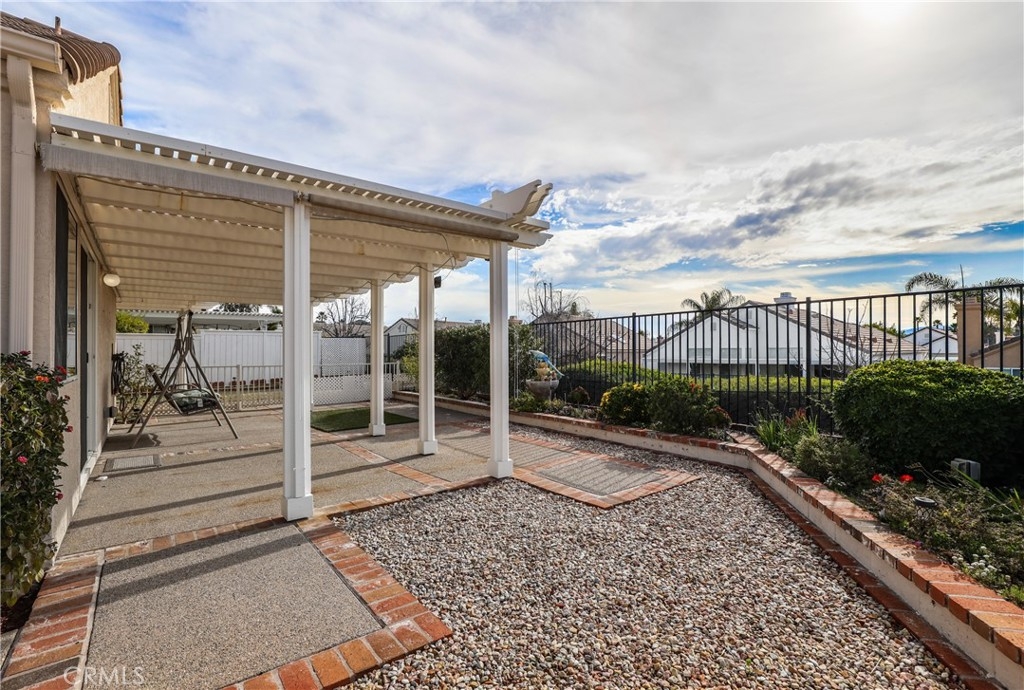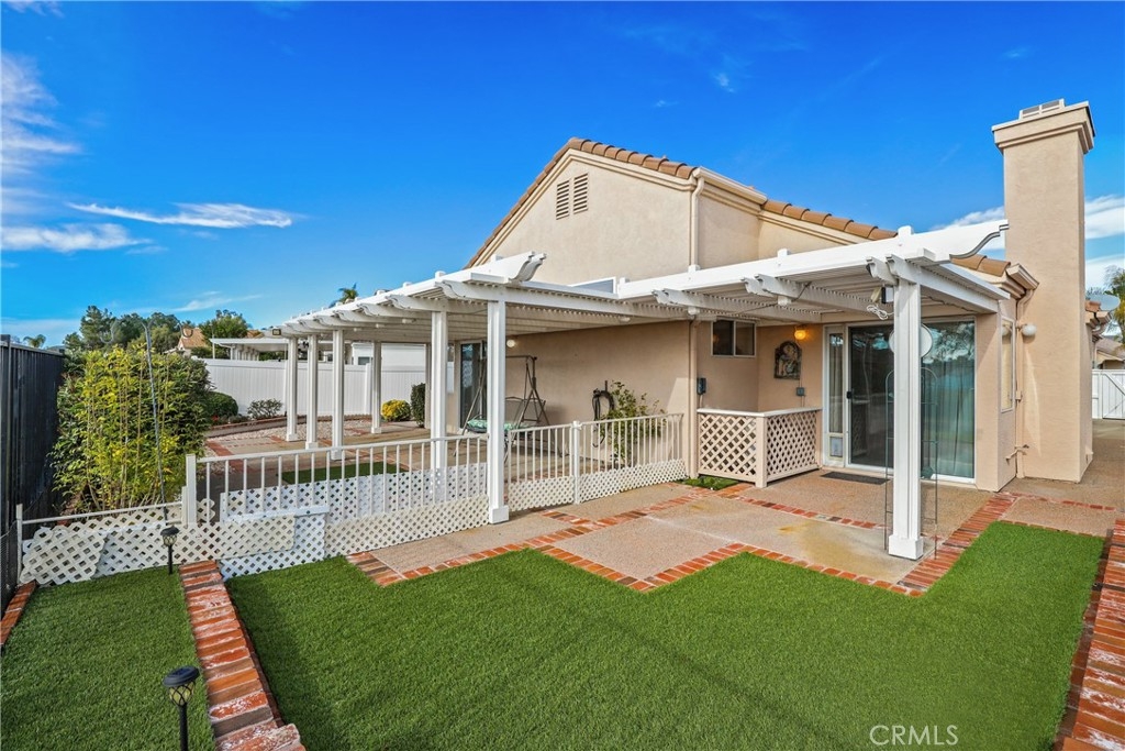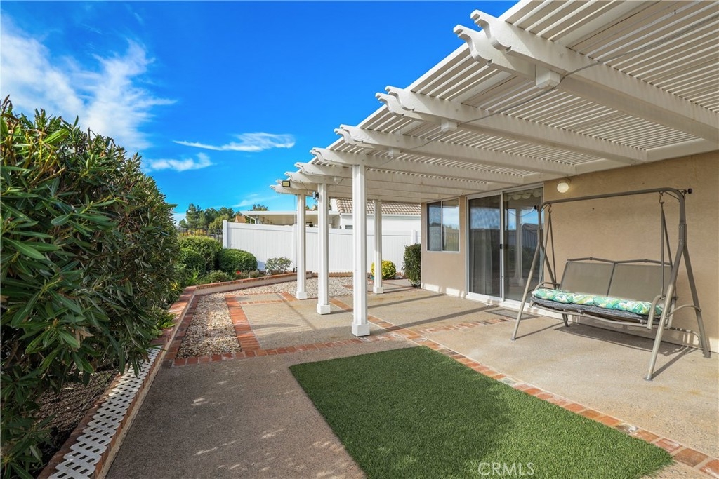BACK on the market due to Buyer health issue. You will love this great single-story home with beautiful natural light, located in The Colony, one of SoCal's finest 55+ gated senior communities. This bright and open plan has a living room with formal dining, a kitchen that opens to the casual eating area and family room with a fireplace. The kitchen has a spacious walk-in pantry. Both bedrooms are oversized and each has a bathroom. The primary suite also offers a walk-in closet and the bathroom has a bidet-type toilet. The patio and back yard are so lovely with artificial turf, brick planters and a view over a large HOA maintained greenbelt. You will love relaxing in the afternoon shade on your patio in this serene location. The front features a gated courtyard and inviting hardscape with clean concrete on both sides of the home. The exterior and patio were repainted recently. The microwave was replaced in the last few months, water heater is 2 years new, heating system is approximately 5 years old. Vinyl fencing on one side is newish. You will love the convenience of the indoor laundry room with cabinets. The 2-car garage has lots of built-in storage. The Colony is a PREMIER SENIOR GATED COMMUNITIES for ages 55+ with a RESORT CLASS CLUBHOUSE, year-round pool, 2 spas, lighted pickle ball/paddle tennis and tennis courts. You can enjoy the gym, library, ping pong, billiards, hair/nail salon. There are groups & activities for all interests with an auditorium for shows, dances, banquets, concerts, movies, bingo & parties for all occasions. A privately owned 18-hole golf course is inside the gate. The HOA waters & maintains all front landscaping. Guard gated entry and 24-hour security patrol give you peace of mind. You will love the friendly neighbors and sense of community as you enjoy TRUE RESORT STYLE SENIOR LIVING in The Colony.