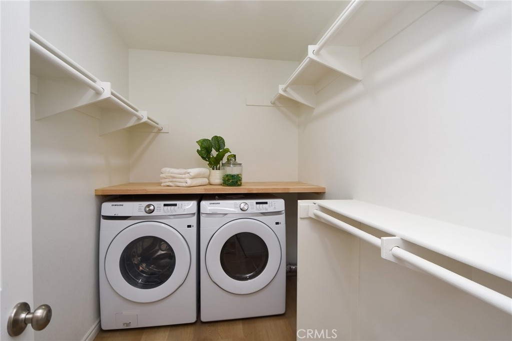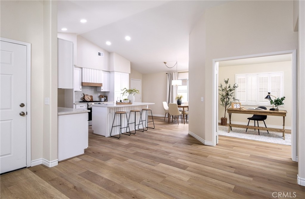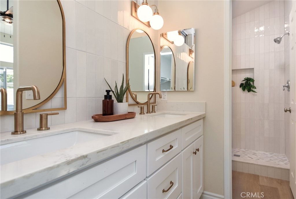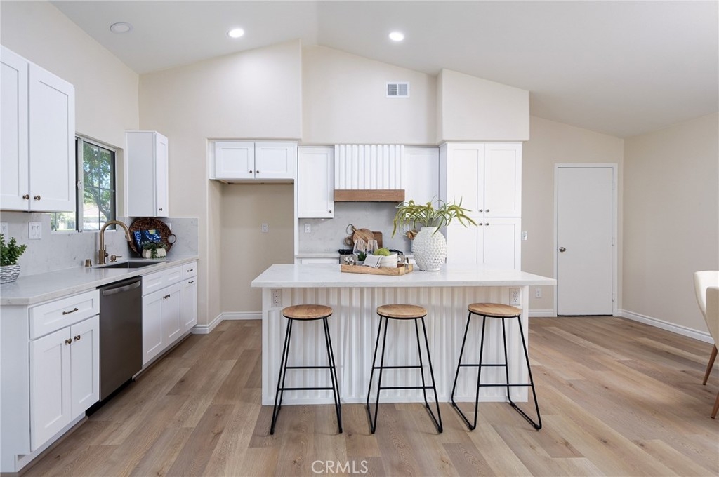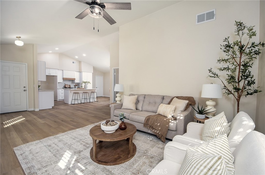 Are you looking for a home that has that new, never lived in feel but in an established, premier 55+ community? Here is a rare opportunity to buy a modern and renovated home in the much sought after community of The Colony in Murrieta. Bright and open, this home has been fully renovated and upgraded throughout. Upon entry, you will notice brand new, wood look LVP flooring, new paint, upgraded baseboards and trim. The kitchen has been fully modernized with brand new cabinetry, quartz countertops, Champagne brass hardware and matching Delta faucet, custom built hood range trimmed in white oak, and slatted, large center island. All appliances are brand new including a stainless steel dishwasher, gas range, microwave range hood. Take a step into the primary bedroom and you will see vaulted ceilings, fresh paint and trim, and continuous flooring throughout. The primary bathroom has been renovated with a new, double sink vanity, quartz countertops, Delta faucets and Kichler lighting. The master shower has been retiled with modern, exquisite subway tile. The washer and dryer are conveniently located in the primary closet where they are easily assessable. Brand new washer and dryer included in the sale. Step outside on the back patio and enjoy the sunny California weather. The backyard is adjacent to a green belt which is peaceful and private. This home is part of the Colony community that includes a 24-hour guard gate, a resort style clubhouse, a pool and 2 spas, lighted tennis, paddle tennis, pickle ball, gym, auditorium, cards, hair salon, library, billiards and lots of other activities, parties, events, concerts, movies and planned group trips. An 18-hole golf course is inside the gate.