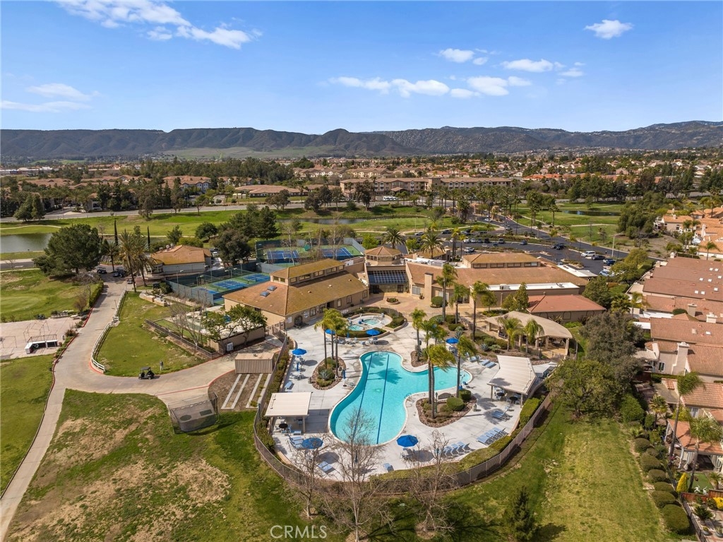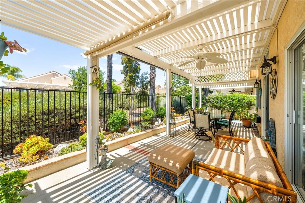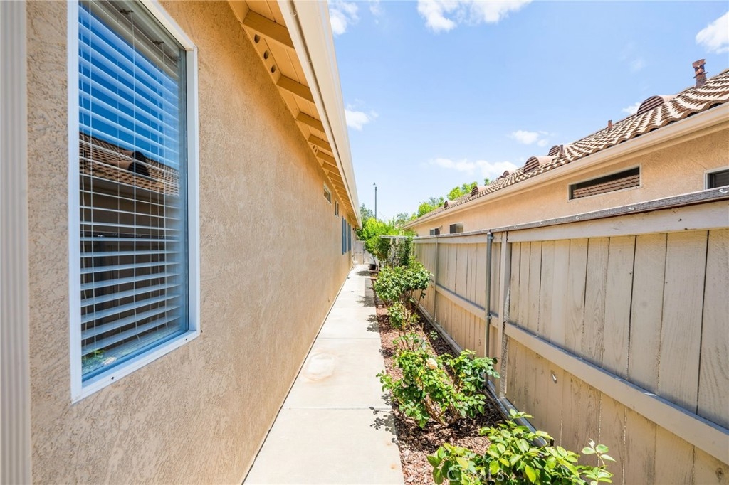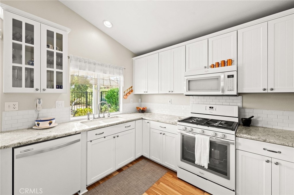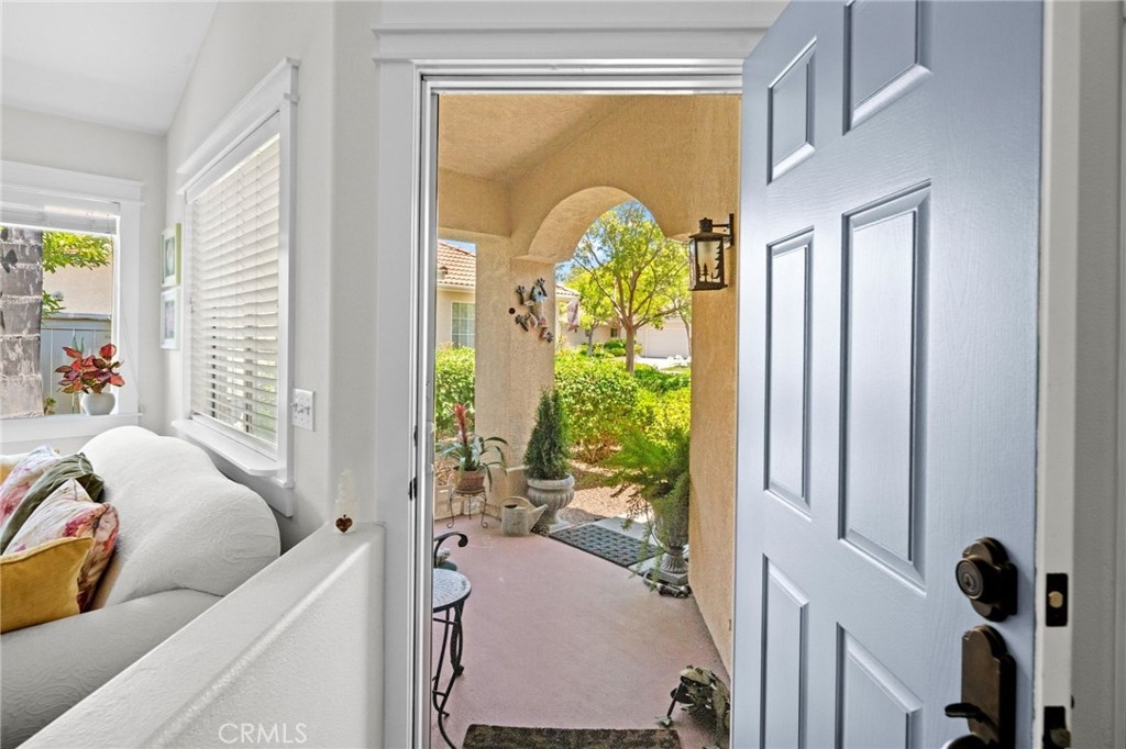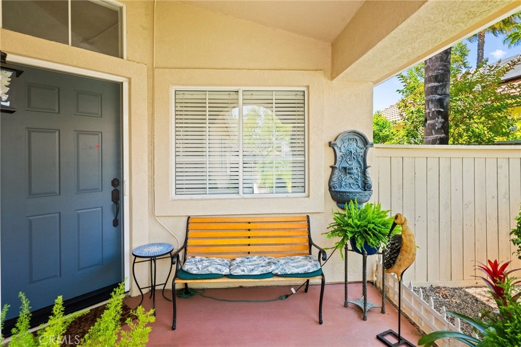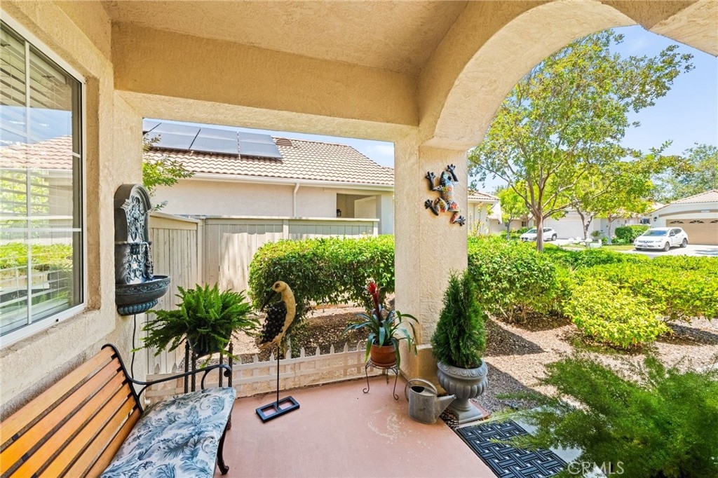 Welcome home to Resort Living at The Colony, a spectacular 55+ community in Murrieta. Spacious and turnkey, 3 bedroom, 2 bath home with 1,230 sqft and 2 car attached garage. Well laid out floorplan that has been updated and well taken care of. The kitchen has been upgraded and remodeled, white cabinets with brushed nickel pulls, solid slab granite countertops, Whirlpool appliances, double bowl sink and brushed nickel faucet. Dining room and living room with gas or wood burning fireplace. Primary bedroom suite has a sliding glass door with direct access to backyard. Darling primary bathroom has white cabinets with antique crystal knobs, double sinks, walk in shower, closet has mirror wardrobe doors. Secondary bedroom at the end of the hall is light and bright, large closet with sliding doors. Third bedroom is currently used family room/office. Guest bathroom has updated cabinetry with nickel plumbing fixtures and shower/ tub combo. Laundry room has built in cabinets above the washer and dryer. Gorgeous real Hickory wood flooring throughout the home with carpet in guest bedroom and tile in the bathrooms and laundry room. Newer interior paint, custom window casing and trim, wainscoating, and ceiling fans throughout. Walk out and enjoy your welcoming and private backyard. Peaceful, private and serene-- tastefully landscaped yard with fruit trees and flowering plants all on a drip system, a garden paradise. Latticed patio cover with concrete walkway. Backyard backs to a parklike setting- no direct neighbors beind your home. The Colony is a PREMIER GATED SENIOR COMMUNITY for ages 55+ with a RESORT CLASS CLUBHOUSE, year-round pool, 2 spas, lighted pickle ball/paddle tennis and tennis courts. You can enjoy the gym, library, ping pong, billiards, hair/nail salon. There are groups & activities for all interests with an auditorium for shows, dances, banquets, concerts, movies, bingo & parties for all occasions. A privately owned 18-hole golf course is inside the gate. The HOA waters & maintains all front landscaping. Guard gated entry and 24-hour security patrol give you peace of mind. You will love the friendly neighbors and sense of community as you enjoy TRUE RESORT STYLE SENIOR LIVING in The Colony. Low taxes and in the heart of the fabulous city of Murrieta. Easy and convenient access to shopping, movie theater, restaurants and freeway access. Stunning home located in a wonderful community-- come check it out and fall in love!