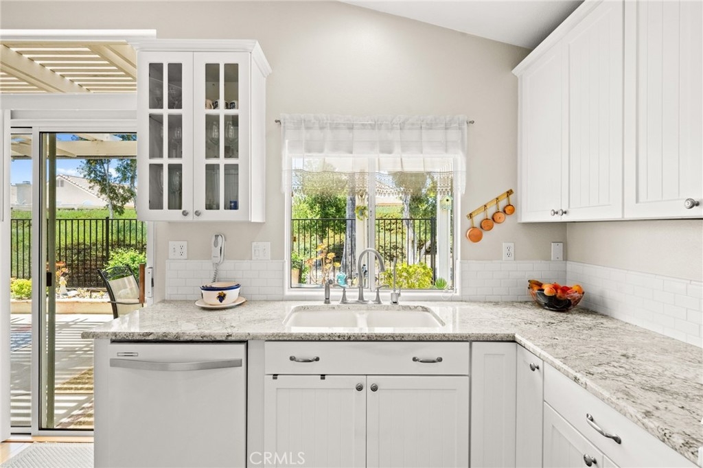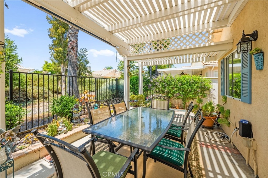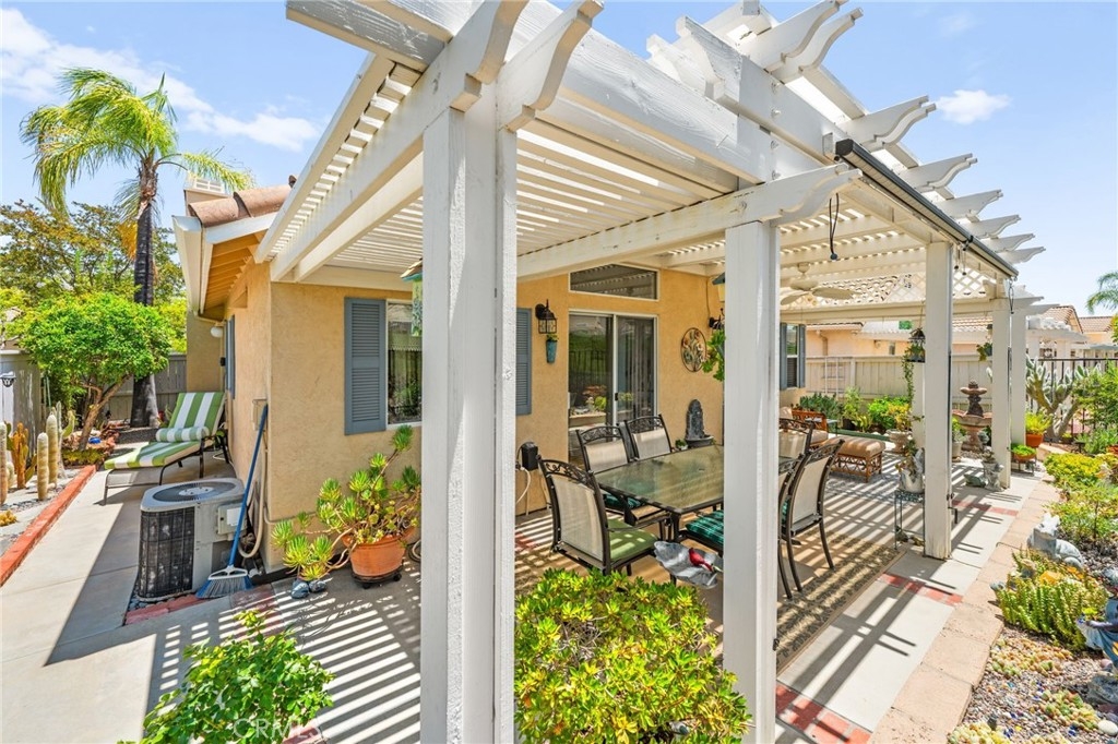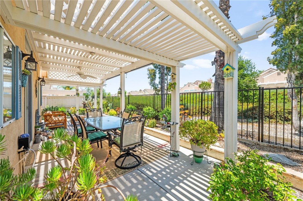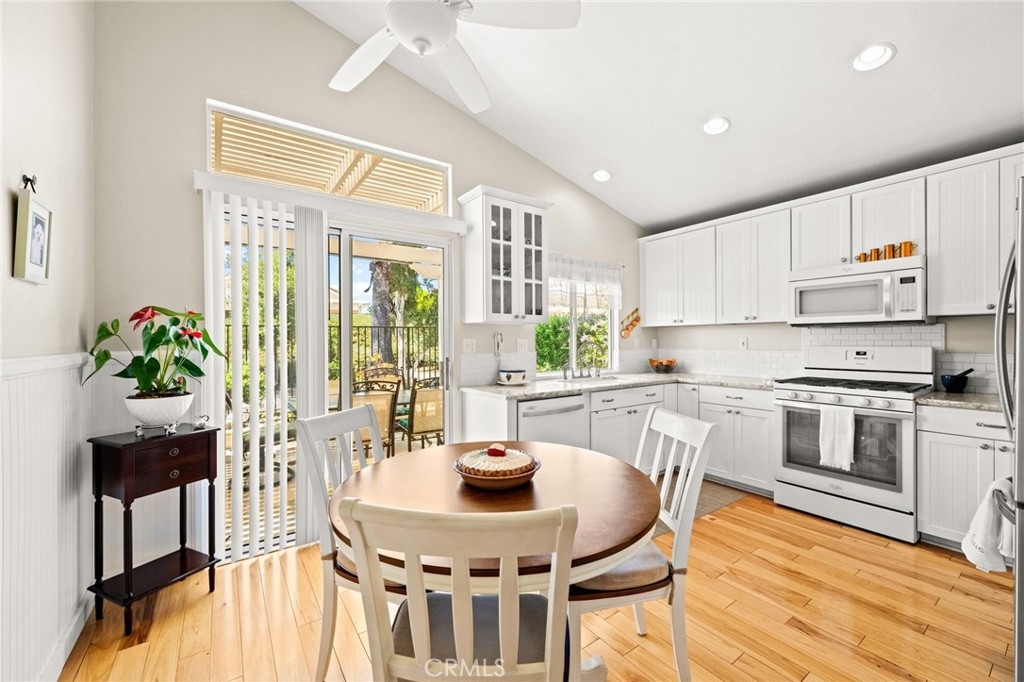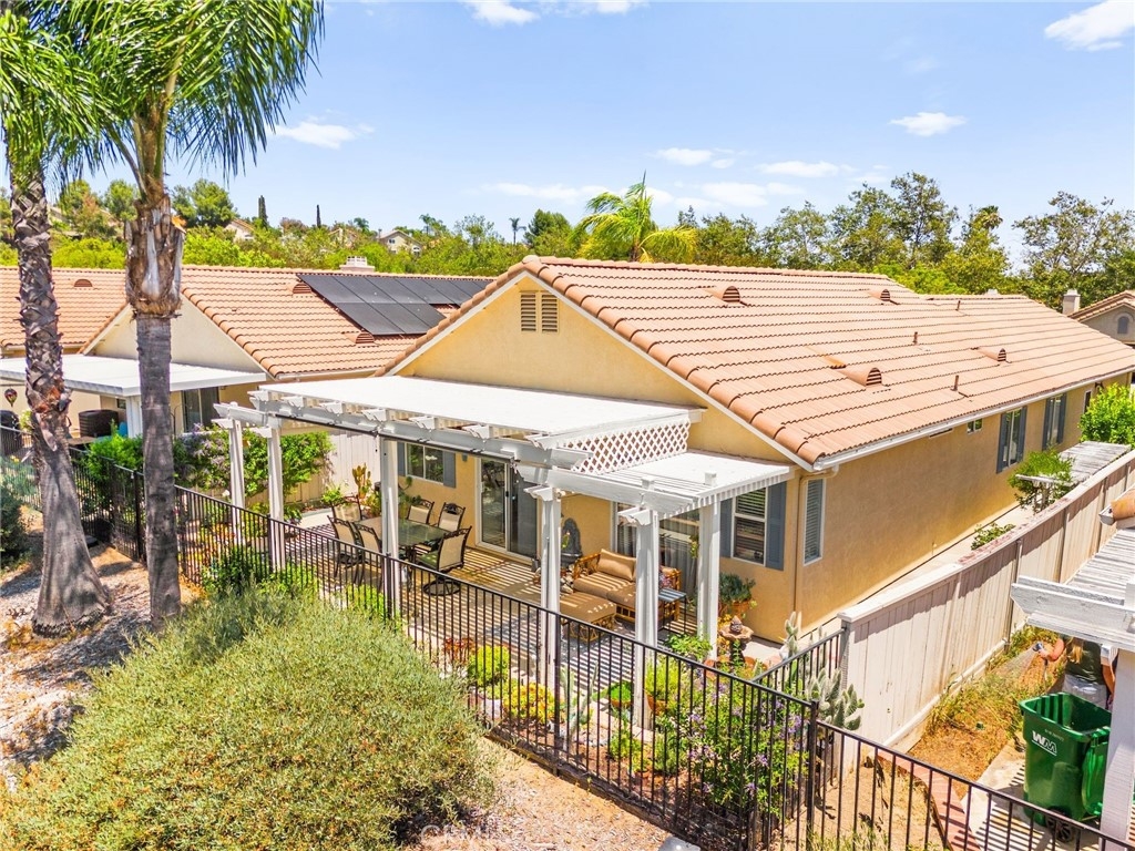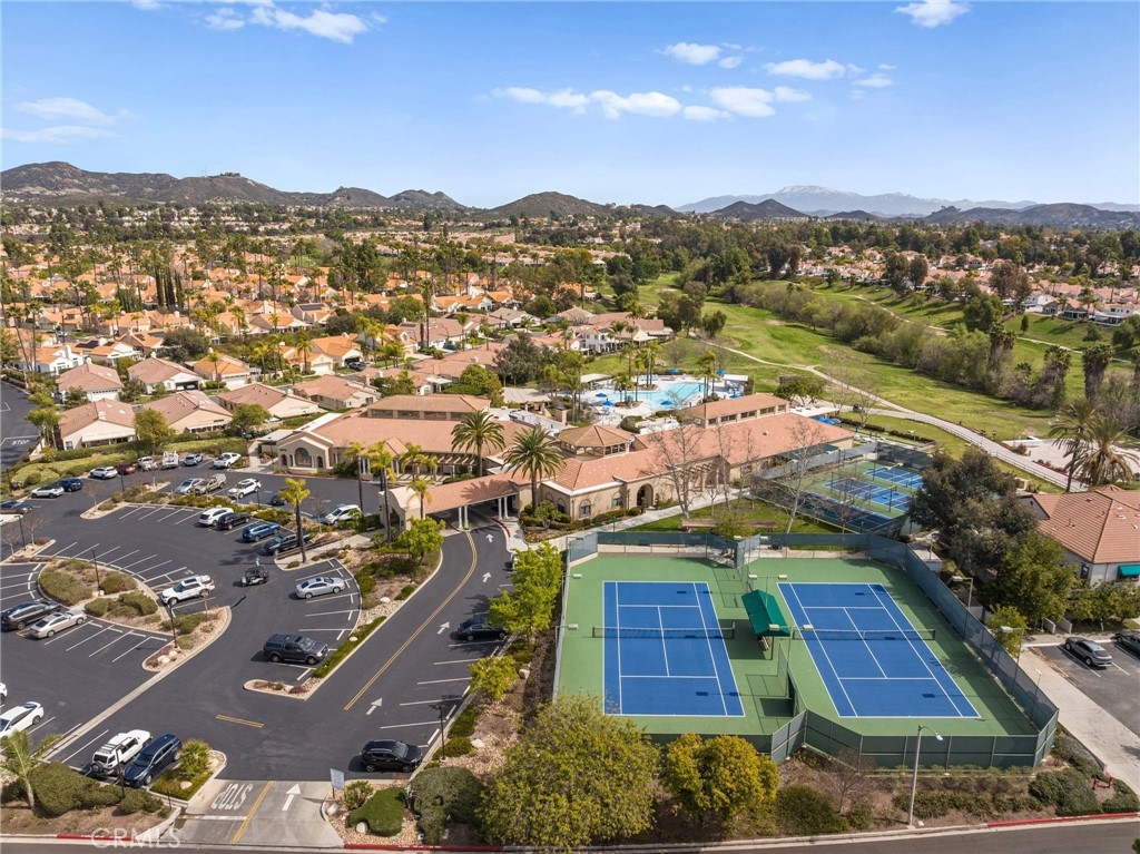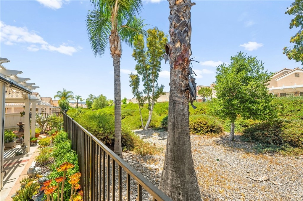 Welcome home to Resort Living at The Colony, a spectacular 55+ community in Murrieta. Spacious and turnkey, 3 bedroom, 2 bath home with 1,230 sqft and 2 car attached garage. Well laid out floorplan that has been updated and well taken care of. The kitchen has been upgraded and remodeled, white cabinets with brushed nickel pulls, solid slab granite countertops, Whirlpool appliances, double bowl sink and brushed nickel faucet. Dining room and living room with gas or wood burning fireplace. Primary bedroom suite has a sliding glass door with direct access to backyard. Darling primary bathroom has white cabinets with antique crystal knobs, double sinks, walk in shower, closet has mirror wardrobe doors. Secondary bedroom at the end of the hall is light and bright, large closet with sliding doors. Third bedroom is currently used family room/office. Guest bathroom has updated cabinetry with nickel plumbing fixtures and shower/ tub combo. Laundry room has built in cabinets above the washer and dryer. Gorgeous real Hickory wood flooring throughout the home with carpet in guest bedroom and tile in the bathrooms and laundry room. Newer interior paint, custom window casing and trim, wainscoating, and ceiling fans throughout. Walk out and enjoy your welcoming and private backyard. Peaceful, private and serene-- tastefully landscaped yard with fruit trees and flowering plants all on a drip system, a garden paradise. Latticed patio cover with concrete walkway. Backyard backs to a parklike setting- no direct neighbors beind your home. The Colony is a PREMIER GATED SENIOR COMMUNITY for ages 55+ with a RESORT CLASS CLUBHOUSE, year-round pool, 2 spas, lighted pickle ball/paddle tennis and tennis courts. You can enjoy the gym, library, ping pong, billiards, hair/nail salon. There are groups & activities for all interests with an auditorium for shows, dances, banquets, concerts, movies, bingo & parties for all occasions. A privately owned 18-hole golf course is inside the gate. The HOA waters & maintains all front landscaping. Guard gated entry and 24-hour security patrol give you peace of mind. You will love the friendly neighbors and sense of community as you enjoy TRUE RESORT STYLE SENIOR LIVING in The Colony. Low taxes and in the heart of the fabulous city of Murrieta. Easy and convenient access to shopping, movie theater, restaurants and freeway access. Stunning home located in a wonderful community-- come check it out and fall in love!