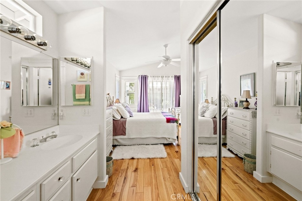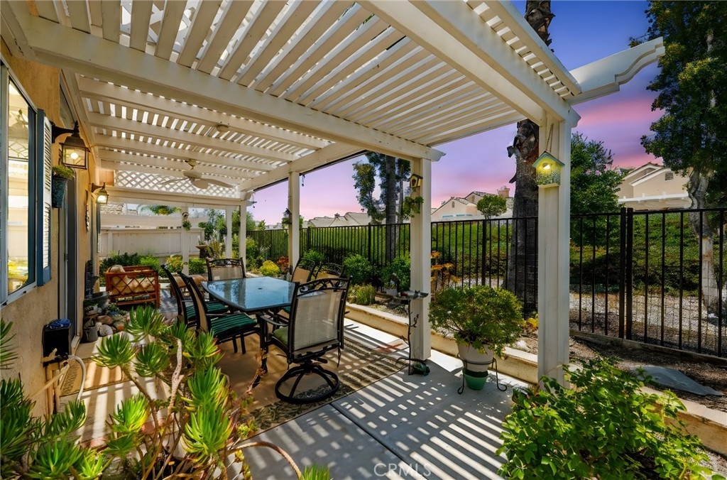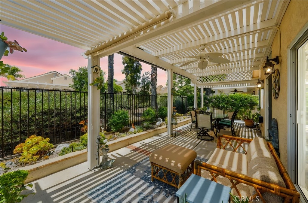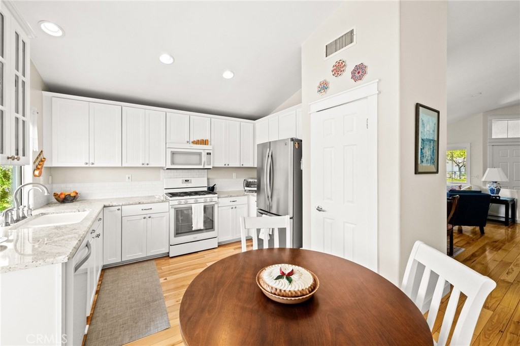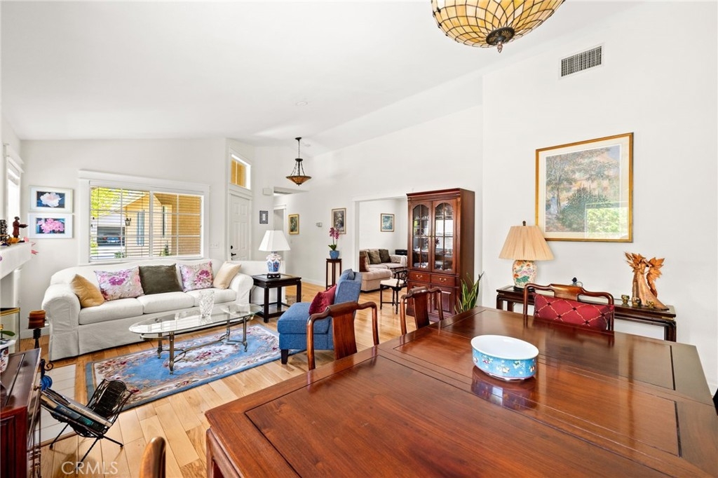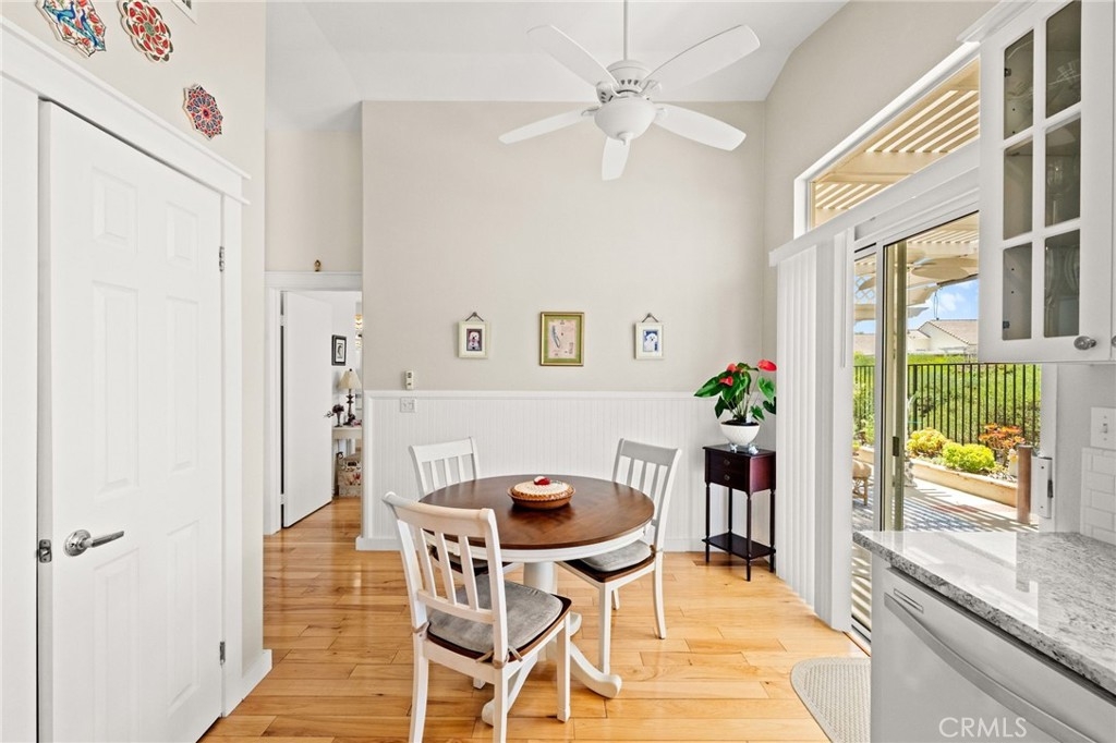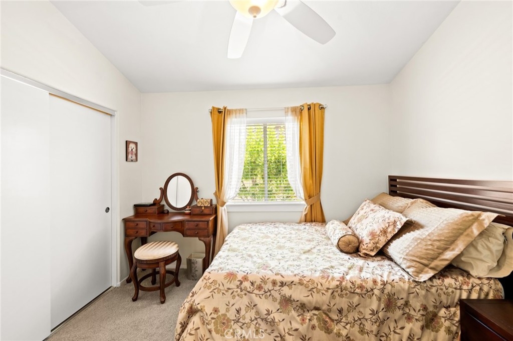 Welcome home to Resort Living at The Colony, a spectacular 55+ community in Murrieta. Spacious and turnkey, 3 bedroom, 2 bath home with 1,230 sqft and 2 car attached garage. Well laid out floorplan that has been updated and well taken care of. The kitchen has been upgraded and remodeled, white cabinets with brushed nickel pulls, solid slab granite countertops, Whirlpool appliances, double bowl sink and brushed nickel faucet. Dining room and living room with gas or wood burning fireplace. Primary bedroom suite has a sliding glass door with direct access to backyard. Darling primary bathroom has white cabinets with antique crystal knobs, double sinks, walk in shower, closet has mirror wardrobe doors. Secondary bedroom at the end of the hall is light and bright, large closet with sliding doors. Third bedroom is currently used family room/office. Guest bathroom has updated cabinetry with nickel plumbing fixtures and shower/ tub combo. Laundry room has built in cabinets above the washer and dryer. Gorgeous real Hickory wood flooring throughout the home with carpet in guest bedroom and tile in the bathrooms and laundry room. Newer interior paint, custom window casing and trim, wainscoating, and ceiling fans throughout. Walk out and enjoy your welcoming and private backyard. Peaceful, private and serene-- tastefully landscaped yard with fruit trees and flowering plants all on a drip system, a garden paradise. Latticed patio cover with concrete walkway. Backyard backs to a parklike setting- no direct neighbors beind your home. The Colony is a PREMIER GATED SENIOR COMMUNITY for ages 55+ with a RESORT CLASS CLUBHOUSE, year-round pool, 2 spas, lighted pickle ball/paddle tennis and tennis courts. You can enjoy the gym, library, ping pong, billiards, hair/nail salon. There are groups & activities for all interests with an auditorium for shows, dances, banquets, concerts, movies, bingo & parties for all occasions. A privately owned 18-hole golf course is inside the gate. The HOA waters & maintains all front landscaping. Guard gated entry and 24-hour security patrol give you peace of mind. You will love the friendly neighbors and sense of community as you enjoy TRUE RESORT STYLE SENIOR LIVING in The Colony. Low taxes and in the heart of the fabulous city of Murrieta. Easy and convenient access to shopping, movie theater, restaurants and freeway access. Stunning home located in a wonderful community-- come check it out and fall in love!