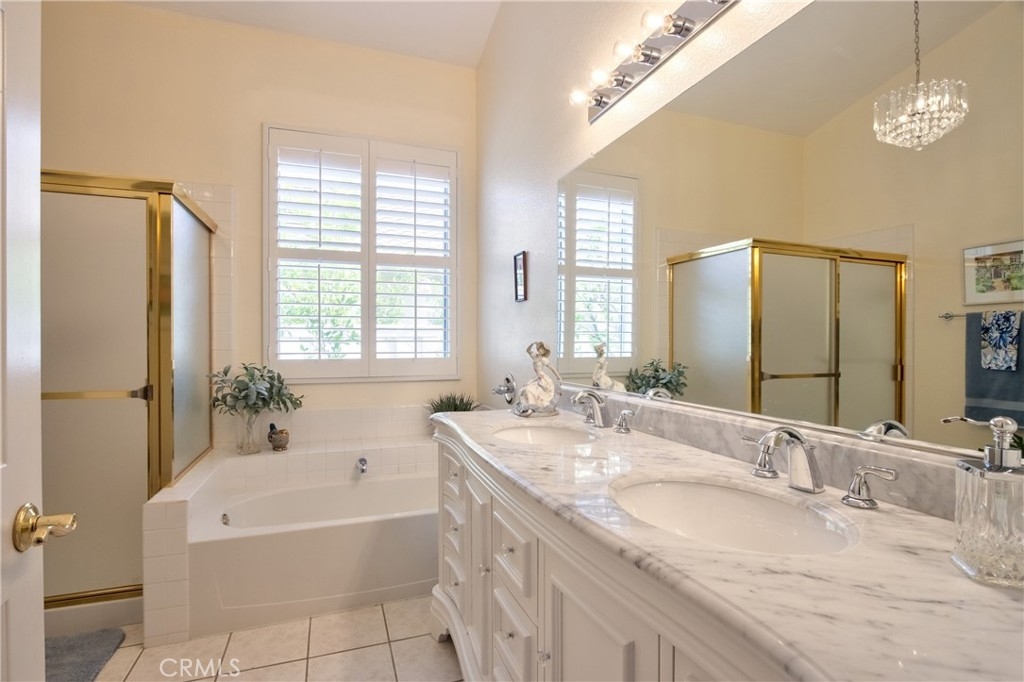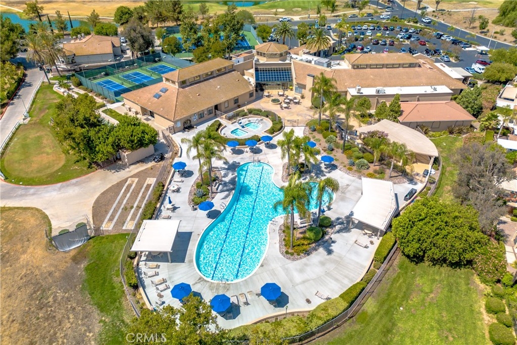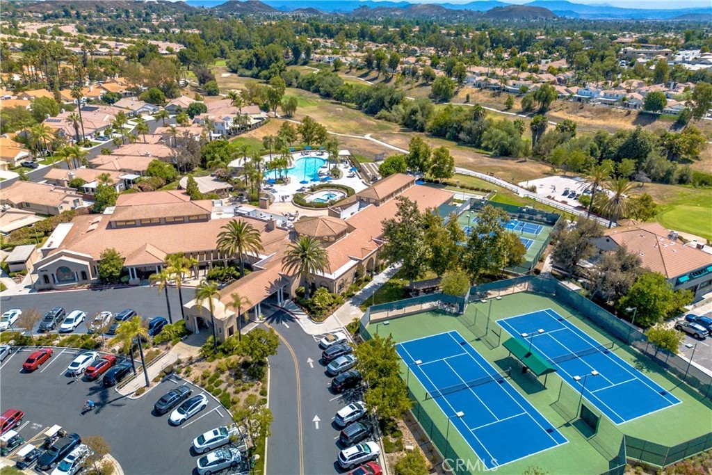 The pictures show just how delightful this home really is! Located in the guard gated 55+ community of The Colony offers so much! The floorpan on this 1912 Sq Ft turnkey home will appeal to many because of the dual primary ensuites. One is located on the first floor and the other on the second floor with a loft (this could be converted into a 3rd Bedroom if needed). The mature trees, meticulous landscaping, lush lawn, and spacious courtyard begin your journey to what will be a wonderful experience! The double door entry opens to the living room and dining room with high ceilings and is flooded in light. The living room has a faux fireplace that looks real and centers the room for all your furniture. The kitchen really is the center of this home where friends and family will gather. The eat-in dining area with a window seat is the perfect place to enjoy morning coffee while reading your favorite book and enjoying the side yard plants! The center island is functional with electric outlets on both sides and cabinet storage. There is a walk-in pantry, double oven, 4 burner range, microwave. There is a separate cabinet area in the dine-in area perfect for a coffee bar! The kitchen is open to the family room with fireplace and extends out to the covered patio for alfresco dining. The first floor primary ensuite is flooded with light and has sliding doors leading out to back patio. The primary bath has double sinks, shower and separate soaking tub. The staircase leading to the loft and second primary ensuite makes a grand statement from the entry. The second floor is private and would make a perfect space for a care giver or adult child. The back patio has several sitting areas, lovely plants that surround the water fountain feature. The side yards have been attended too with flowers and fruit trees. This home has so much character and so many qualities that make this a very special home. Now let's talk about the amenities the HOA offers. The clubhouse hosts so many great events including Friday night bingo. There is a billiard room, gym, library, a social area to meet up with friends. There is a pool and spa, pickle ball courts, tennis, BBQ, bocce ball and much more! There is a golf course that surrounds The Colony but is not owned by the HOA. When you have to venture out, shopping, freeways and downtown Murrieta are not far away. Who wouldn't want to have all of that and also low taxes! This is a win....win....win!!!