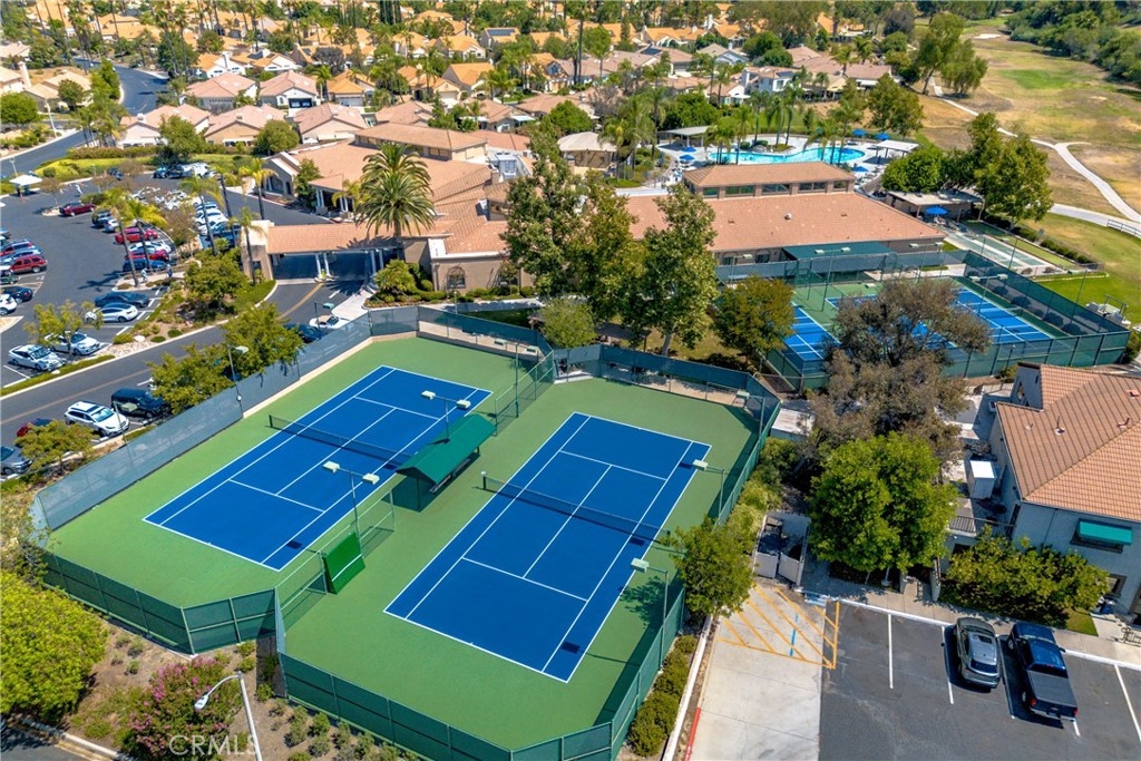 The pictures show just how delightful this home really is! Located in the guard gated 55+ community of The Colony offers so much! The floorpan on this 1912 Sq Ft turnkey home will appeal to many because of the dual primary ensuites. One is located on the first floor and the other on the second floor with a loft (this could be converted into a 3rd Bedroom if needed). The mature trees, meticulous landscaping, lush lawn, and spacious courtyard begin your journey to what will be a wonderful experience! The double door entry opens to the living room and dining room with high ceilings and is flooded in light. The living room has a faux fireplace that looks real and centers the room for all your furniture. The kitchen really is the center of this home where friends and family will gather. The eat-in dining area with a window seat is the perfect place to enjoy morning coffee while reading your favorite book and enjoying the side yard plants! The center island is functional with electric outlets on both sides and cabinet storage. There is a walk-in pantry, double oven, 4 burner range, microwave. There is a separate cabinet area in the dine-in area perfect for a coffee bar! The kitchen is open to the family room with fireplace and extends out to the covered patio for alfresco dining. The first floor primary ensuite is flooded with light and has sliding doors leading out to back patio. The primary bath has double sinks, shower and separate soaking tub. The staircase leading to the loft and second primary ensuite makes a grand statement from the entry. The second floor is private and would make a perfect space for a care giver or adult child. The back patio has several sitting areas, lovely plants that surround the water fountain feature. The side yards have been attended too with flowers and fruit trees. This home has so much character and so many qualities that make this a very special home. Now let's talk about the amenities the HOA offers. The clubhouse hosts so many great events including Friday night bingo. There is a billiard room, gym, library, a social area to meet up with friends. There is a pool and spa, pickle ball courts, tennis, BBQ, bocce ball and much more! There is a golf course that surrounds The Colony but is not owned by the HOA. When you have to venture out, shopping, freeways and downtown Murrieta are not far away. Who wouldn't want to have all of that and also low taxes! This is a win....win....win!!!