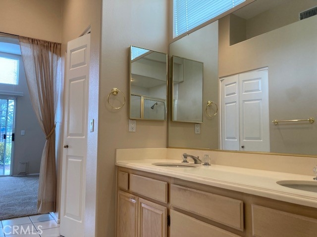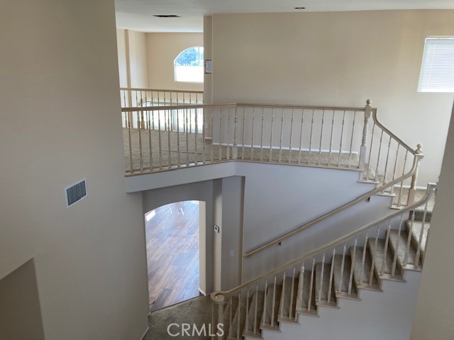 FANTASTIC GOLF COURSE LOCATION for this former model home in The Colony, one of SoCal's finest gated communities for ages 55 plus. You will love the inviting entry courtyard on this quiet cul-de-sac just one block from the Colony clubhouse. As you enter, you are immediately impressed with a majestic staircase, formal living room and spacious dining room with stylish plantation shutters. The kitchen features lovely granite countertops, stainless steel appliances (even a trash compactor) and has room for a casual eating area and large family room. The kitchen and family rooms boast beautiful LVP flooring. You will love the views to your large side patio and the back patio with a spectacular golf course view. You will appreciate the convenience of the DOWNSTAIRS PRIMARY BEDROOM SUITE, bath, walk-in closet + an extra closet and another sliding door to the patio. Upstairs is a large open loft and a guest bedroom with a secret walkway & a bathroom. This area is a perfect retreat for guests or a caretaker. There is an additional half bath downstairs and an indoor laundry room. This oversized lot provides a private oasis featuring a large side yard with a built-in BBQ and a hot tub (included). Wander around to the back patio to marvel at the GOLF COURSE and POND VIEWS and there is another large side yard with grass. You have so much privacy in your patio & yards with space between the neighbors. There is a Ring doorbell and security system included. The Colony is one of SoCal's PREMIER SENIOR COMMUNITIES for ages 55+ with a RESORT CLASS CLUBHOUSE, year-round pool, 2 spas, lighted pickle ball/paddle tennis and tennis courts. You can enjoy the gym, library, ping pong, billiards, hair/nail salon. There are groups & activities for all interests with an auditorium for shows, dances, banquets, concerts, movies, bingo & parties for all occasions. A privately owned 18-hole golf course is inside the gate. The HOA waters & maintains all front landscaping. Guard gated entry and 24-hour security patrol give you peace of mind. The 2-car garage also has room for a golf cart or workbench/hobby area. Enjoy this great cul-de-sac location close to the clubhouse. You will love the friendly neighbors and sense of community as you enjoy TRUE RESORT STYLE SENIOR LIVING in The Colony.