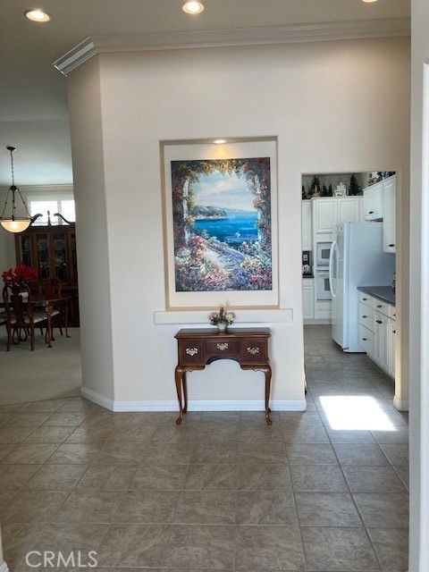 UPGRADED SINGE STORY HOME in The Colony, one of So Cal's finest 55+ GATED COMMUNITIES. SPECTACULAR LEADED GLASS ENTRY DOORS welcome you to this home with the upgrades you love. Featuring PLANTATION SHUTTERS, WIDE BASEBOARDS & CROWN MOLDING ACCENTS. Kitchen has QUARTZ COUNTERTOPS, WHITE CABINETS & so much storage. The primary bedroom suite is very spacious with a slider to the back patio and a SUMPTUOUS BATH with quartz counters, dual sinks, a large soaking tub, separate shower & WALK-IN CLOSET. The front bedroom is large enough to be a SECOND PRIMARY BEDROOM with a large wall closet. The third bedroom is being used as an office with a walk-in closet. INDOOR LAUNDRY room with a convenient sink & lots of storage. The garage has room for 2 cars + a golf cart & finished floor and built-in storage/workbench. WATER HEATER is NEW in 2021. Home has a circulating pump for INSTANT HOT WATER. The Colony has a very active clubhouse with a pool, 2 spas, lighted pickle ball/paddle tennis & tennis courts. You can enjoy the gym, card rooms, billiards, hair salon & grand ballroom, the site of many concerts, dances, movies, shows & parties for all holidays. There is a privately owned 18 HOLE GOLF COURSE inside the community. The HOA waters & maintains all front yards. You will feel so safe with the manned entry gate and 24 hour security patrol. Welcome to The Colony where we feature TRUE RESORT STYLE SENIOR LIVING.