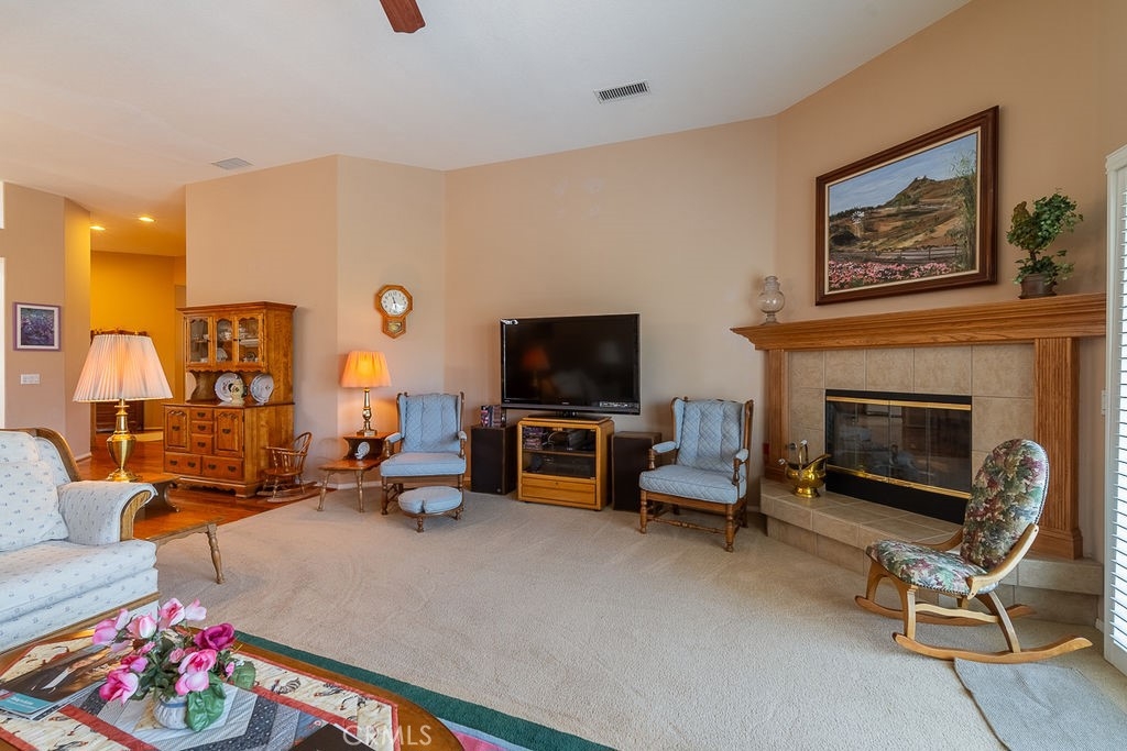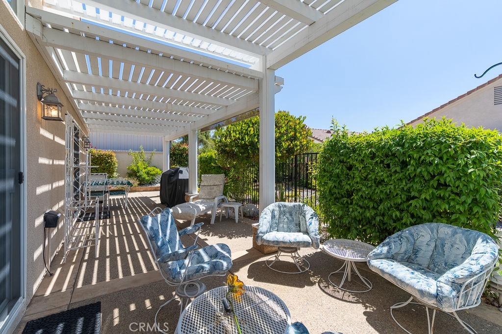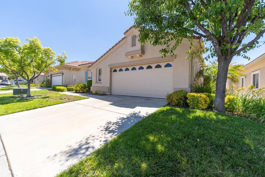 FRESH EXTERIOR PAINT adds lots of curb appeal to this SINGLE STORY 3 BEDROOM 2 BATH HOME on a quiet interior street in The Colony, for ages 55+. The entry walkway has great hardscape and landscaping as you approach the double front doors. You will love the RICH WOOD FLOORING, WINDOW SHUTTERS, soaring ceilings & great natural light. The great room is plenty large enough for family gatherings or parties. The large kitchen has corian countertops and so much storage and countertop space. The spacious primary bedroom suite has a lush bath with 2 sinks (corian counters), a soaking tub, separate shower and a large walk-in closet, customized ala "California Closets". The second bedroom is well separated and is oversized with space for a bedroom + desk or sitting area + a bath nearby. The third bedroom is used as a double-door den off the entry and it has a walk-in closet. There is a large laundry room with a convenient sink and lots of storage and countertop space. The patio is so inviting and looks out on a greenbelt maintained by the HOA. The AC was replaced about 5 years ago and water heater was replaced in 2022. The Colony is a PREMIER GATED SENIOR COMMUNITY for ages 55+ with a RESORT CLASS CLUBHOUSE, year-round pool, 2 spas, lighted pickle ball/paddle tennis and tennis courts. You can enjoy the gym, library, ping pong, billiards, hair/nail salon. There are groups & activities for all interests with an auditorium for shows, dances, banquets, concerts, movies, bingo & parties for all occasions. A privately owned 18-hole golf course is inside the gate. The HOA waters & maintains all front landscaping. Guard gated entry and 24-hour security patrol give you peace of mind. You will love the friendly neighbors and sense of community as you enjoy TRUE RESORT STYLE SENIOR LIVING in The Colony.