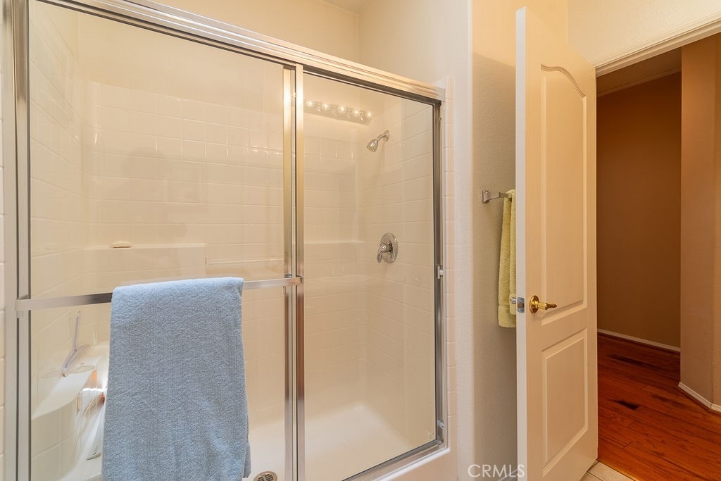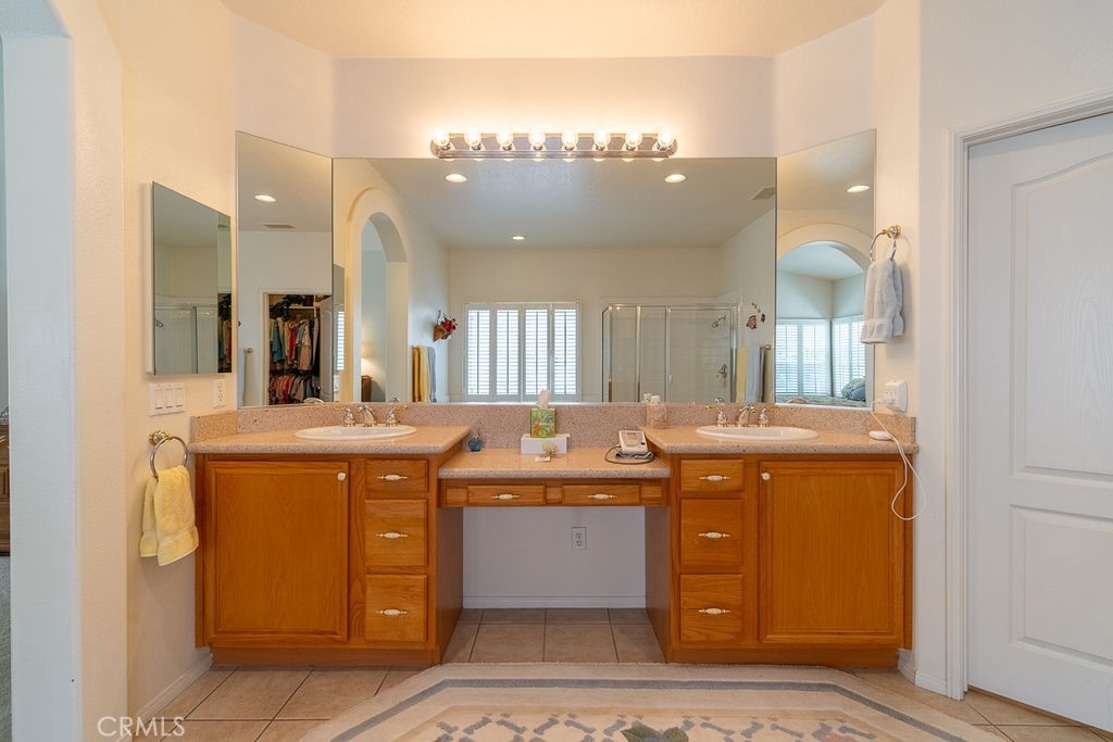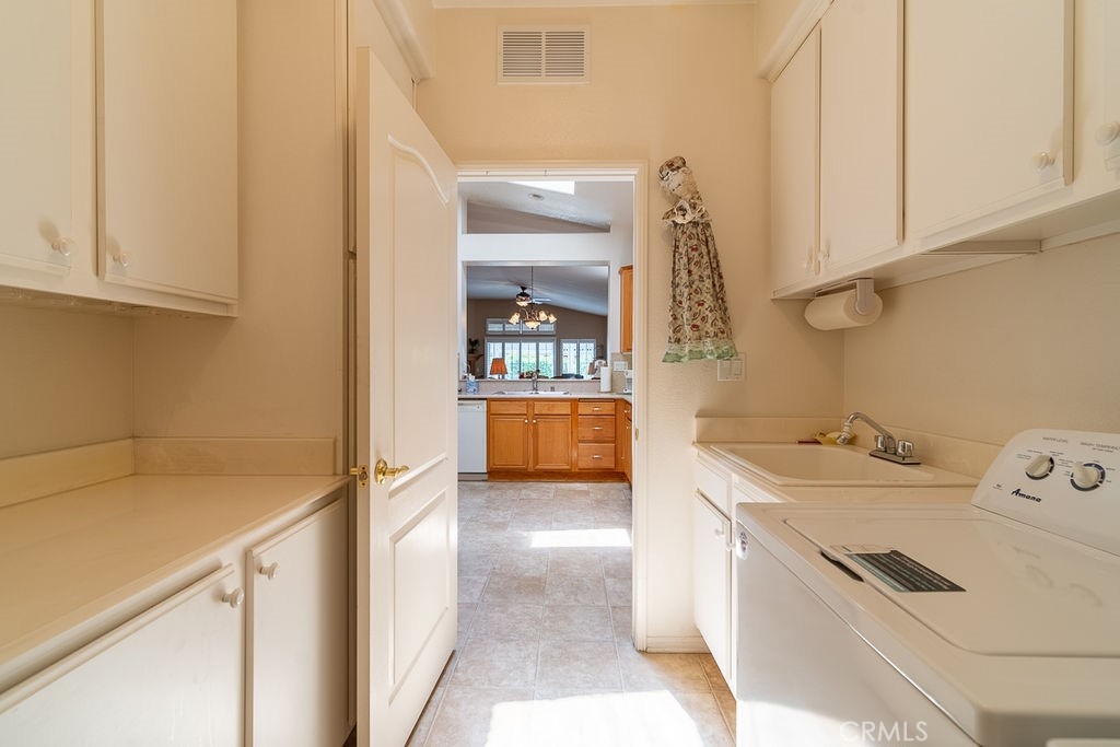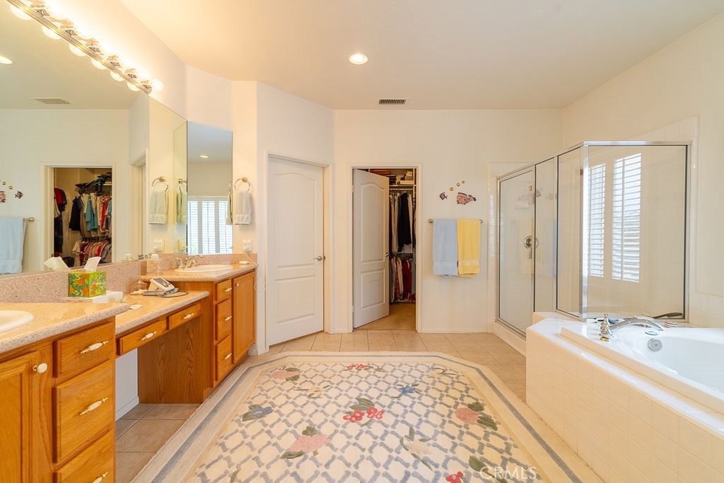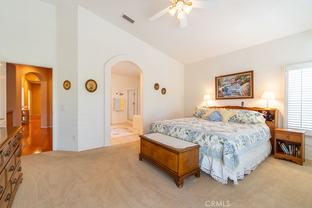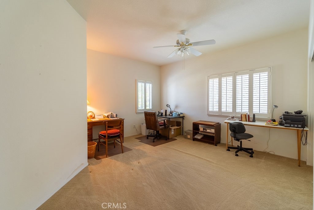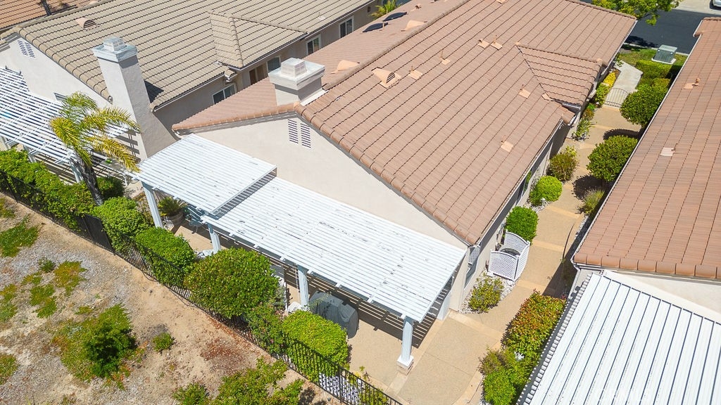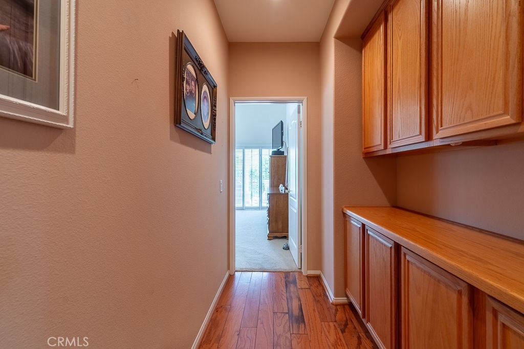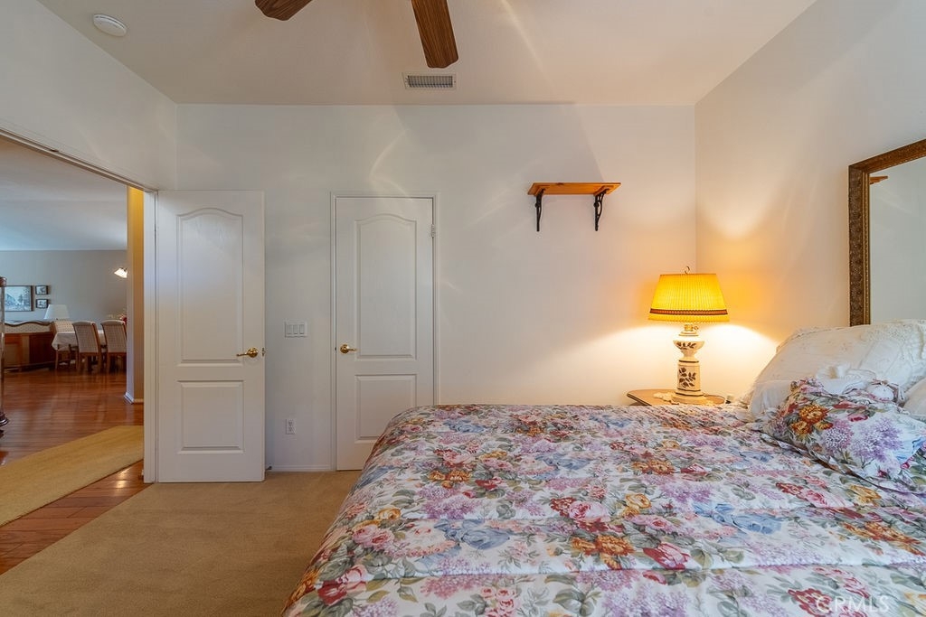 FRESH EXTERIOR PAINT adds lots of curb appeal to this SINGLE STORY 3 BEDROOM 2 BATH HOME on a quiet interior street in The Colony, for ages 55+. The entry walkway has great hardscape and landscaping as you approach the double front doors. You will love the RICH WOOD FLOORING, WINDOW SHUTTERS, soaring ceilings & great natural light. The great room is plenty large enough for family gatherings or parties. The large kitchen has corian countertops and so much storage and countertop space. The spacious primary bedroom suite has a lush bath with 2 sinks (corian counters), a soaking tub, separate shower and a large walk-in closet, customized ala "California Closets". The second bedroom is well separated and is oversized with space for a bedroom + desk or sitting area + a bath nearby. The third bedroom is used as a double-door den off the entry and it has a walk-in closet. There is a large laundry room with a convenient sink and lots of storage and countertop space. The patio is so inviting and looks out on a greenbelt maintained by the HOA. The AC was replaced about 5 years ago and water heater was replaced in 2022. The Colony is a PREMIER GATED SENIOR COMMUNITY for ages 55+ with a RESORT CLASS CLUBHOUSE, year-round pool, 2 spas, lighted pickle ball/paddle tennis and tennis courts. You can enjoy the gym, library, ping pong, billiards, hair/nail salon. There are groups & activities for all interests with an auditorium for shows, dances, banquets, concerts, movies, bingo & parties for all occasions. A privately owned 18-hole golf course is inside the gate. The HOA waters & maintains all front landscaping. Guard gated entry and 24-hour security patrol give you peace of mind. You will love the friendly neighbors and sense of community as you enjoy TRUE RESORT STYLE SENIOR LIVING in The Colony.