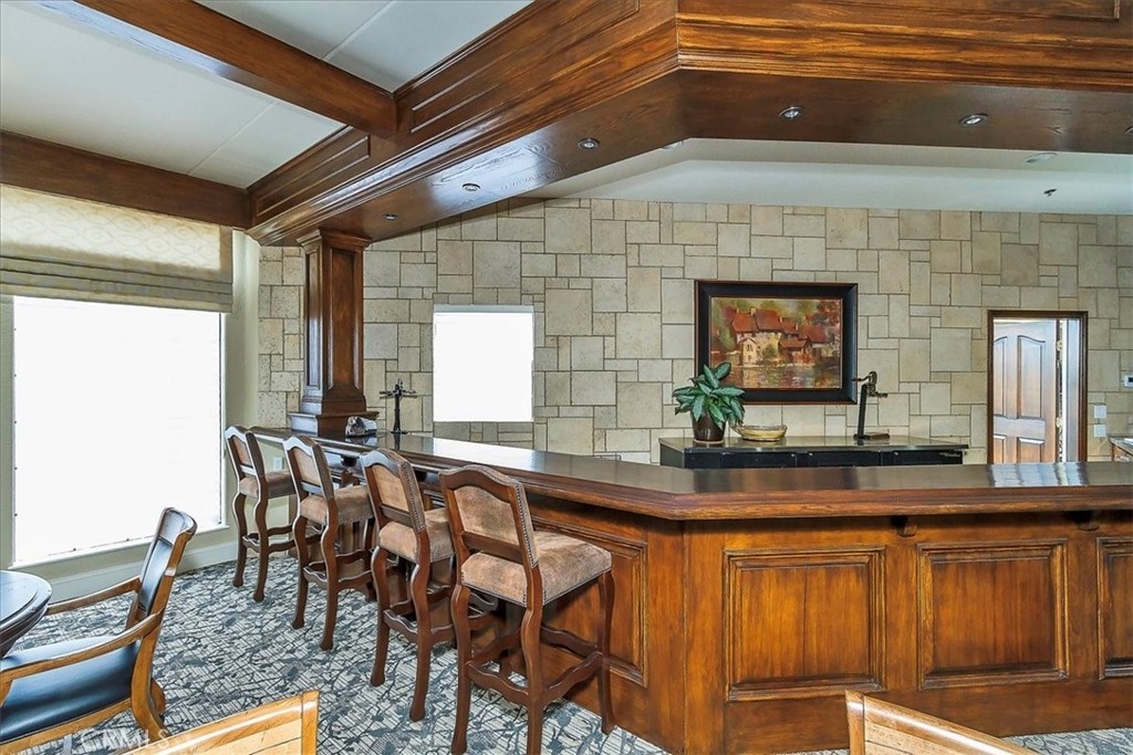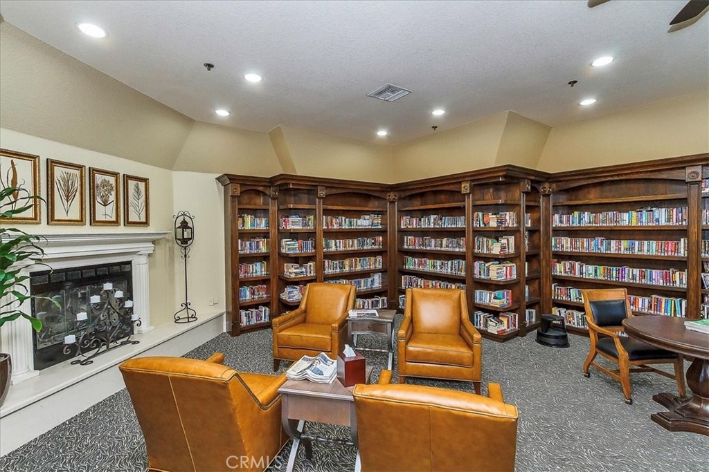 Welcome to The Colony! A highly desirable master planned 55+ guard gated community! This bright & spacious former model single story home with golf course views, boasts 3 Bedrooms/2 baths/2 car oversized attached garage with workshop plus extra space for golf cart parking! Enter through the inviting courtyard with rose bushes & lemon tree! The double entry front doors open to beautiful wood flooring with inlaid stone! The light-filled home offers the 3rd bedroom w/closet - upgraded to a custom office with a gorgeous built-in desk and shelving unit. The front bedroom has custom shutters and large closet. Convenient indoor large laundry room with tile flooring, sink & bult-in cabinetry for storage. Gourmet kitchen has wood flooring, granite counter-tops, upgraded cabinetry, recessed lighting, 5-burner stovetop, stainless steel convection oven/microwave combo! Built-in Niche for your own coffee bar! In-kitchen eating area with quaint window views of the courtyard! The large open living room area with gorgeous custom built-ins for TV/audio, raised stone fireplace, sliding door to patio area & open dining room! This popular floor plan has a large master suite with custom built-in for TV, sliding door to relaxing patio area, LARGE step up DEEP tub surrounded by granite/travertine, separate vanity area, His & Her sinks, oversized walk-in shower, and a large walk-in closet with built-ins!