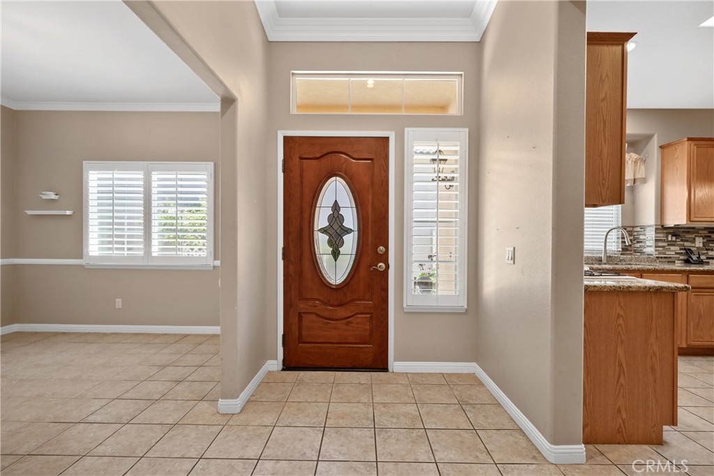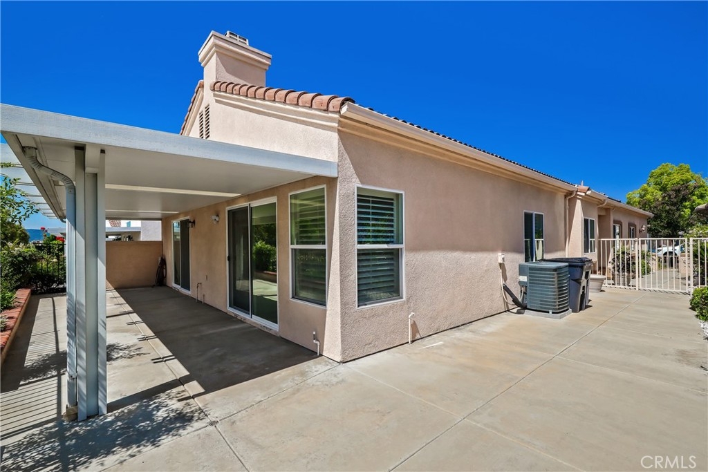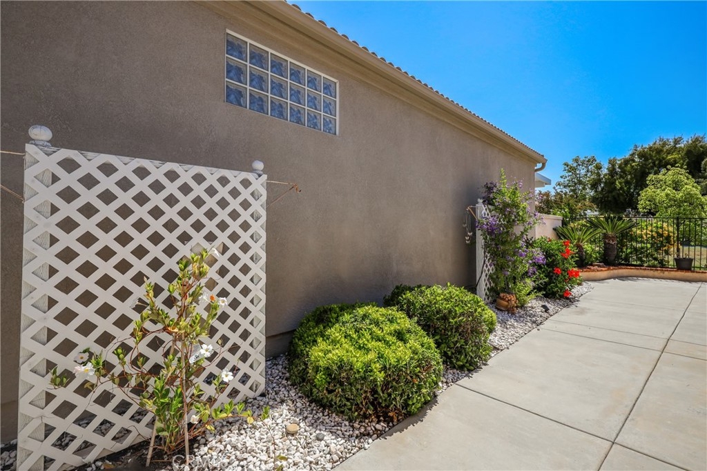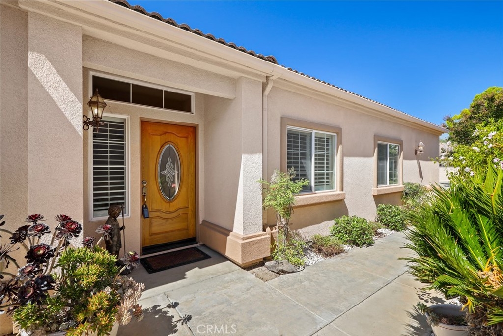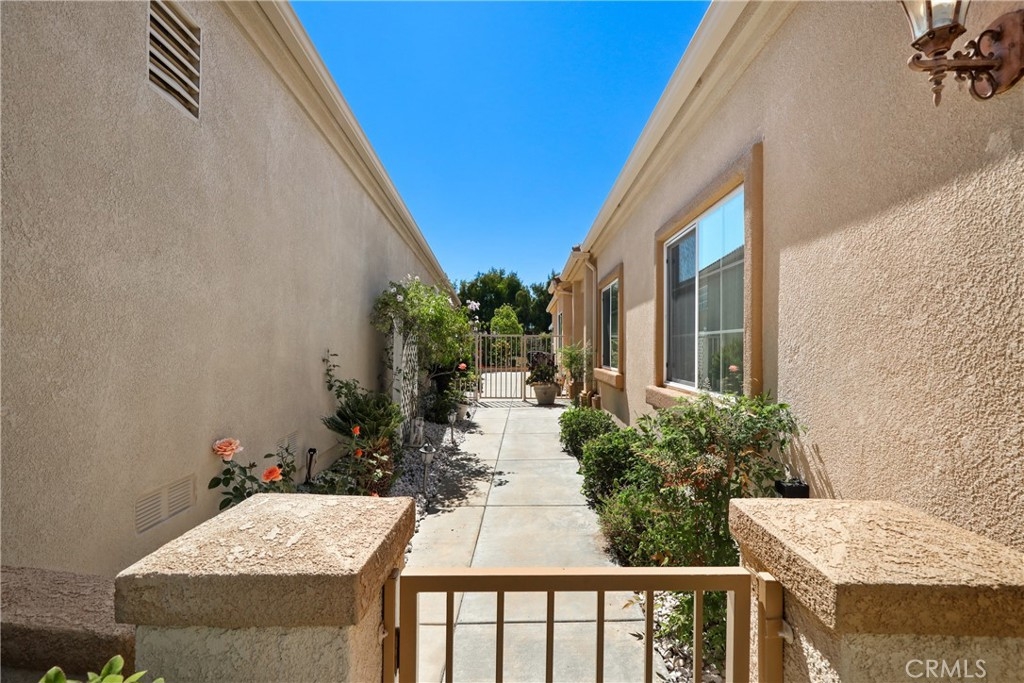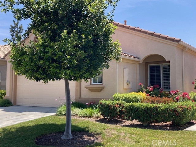 Hurry to see this popular plan that backs to an HOA maintained grassy greenbelt. A beautiful front door with a leaded glass inset welcomes you to the entry foyer. You will love the soaring ceilings, natural light and wood type flooring throughout the home as well as plantation shutters, crown molding, architectural baseboard & other wood features. The kitchen is upgraded with granite counters, decorator glass backsplash & newer stainless-steel oven, dishwasher and refrigerator. The spacious primary suite has a large walk-in closet and dual sink bath with a soaking tub and large step-in shower. Bedroom #2 is oversized and can easily be a second primary suite that opens to the second bath. The third bedroom is open to the entry foyer and does not have a closet. You will love relaxing on your east-facing patio with easy care aluminum cover. You overlook a serene greenbelt with grass and lovely plants all maintained by the HOA. AC is about 3 years new. The house was completely repiped, an advantage on your homeowner's insurance. There is an indoor laundry room with a convenient sink. Lots of built-in cabinets in the garage. You will love The Colony lifestyle with our FIRST-CLASS RESORT LEVEL CLUBHOUSE featuring a year-round pool, 2 spas, outdoor patios, lighted pickle ball/paddle tennis and tennis courts. Enjoy the gym, library, billiards room with cards, groups & activities for every interest. The huge auditorium hosts shows, concerts, dances, movies, banquets & parties for all occasions. The HOA waters & maintains all front yards. Guard gated entry with 24-hour security patrol for your peace of mind. A privately owned 18-hole golf course is inside the gate. Close to restaurants, shopping, medical, wineries and casinos. Call today so you can start to enjoy TRUE RESORT-STYLE SENIOR LIVING for those age 55 and better.