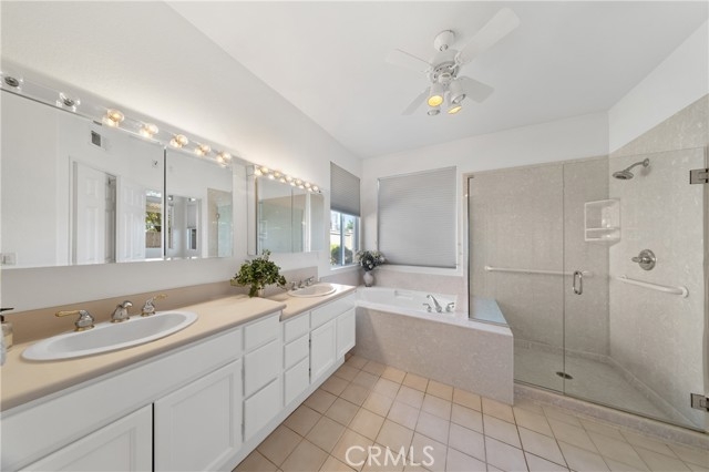 YOUR OWN PERSONAL RESORT with a large PRIVATE POOL, SPA & MAGNIFICENT VIEW OVER THE GOLF COURSE to the MOUNTAINS. This beautiful single-story home on a LARGE PREMIUM LOT is ideal for family gatherings with a SPACIOUS COVERED PATIO, ramped easy-entry pool + a spa with directional jets for relaxing. This lovely home sparkles with FRESH INTERIOR PAINT & laminate or tile flooring, no carpet. The living area is light & airy with vaulted ceilings & lots of natural light. Kitchen has a double oven & stainless-steel cooktop, dishwasher & refrigerator and there is a casual dining nook. The primary retreat offers plenty of space for your bedroom plus a sitting area. Primary bath is UPGRADED with easy-care MARBLE COMPOSITE SHOWER, RIMLESS GLASS DOORS, soaking tub, dual sinks and a large walk-in closet with custom built-ins by Closet World. Bedroom 2 could be a SECOND PRIMARY BEDROOM boasting a walk-in closet with shelving & storage + an in-suite bath. Bedroom 3 is used as an office with a built-in desk, storage and file drawers by Closet World. There is a convenient half bath for guests and an indoor laundry room with a sink and storage. The exterior is so inviting with a private entry courtyard, concrete walkways on both sides & lots of brick-lined planters. You will love the energy efficiency of QUIET COOL FANS in 4 areas with individual controls to cool the home & the attic. Your garage has room for 2 cars + a golf cart or work area with built-in storage, finished floor and attic ladder. This spectacular home is centrally located on beautiful Colony Drive, nestled in The Colony, a vibrant 55+ GATED COMMUNITY. This stunning residence grants access to a RESORT STYLE CLUBHOUSE with an array of amenities for an unparalleled lifestyle. You will love the year-round community pool, 2 spas, lighted pickle ball/paddle tennis & tennis courts. You can enjoy the gym, library, ping pong, billiards, hair/nail salon. There are groups & activities for all interests with an auditorium for shows, dances, banquets, concerts, movies, bingo & parties for all occasions. A privately owned 18-hole golf course is inside the gate. The HOA waters & maintains all front landscaping. Guard gated entry and 24-hour security patrol give you peace of mind. In the safe city of Murrieta, you are close to stores, restaurants, medical, casinos and wineries. Enjoy the friendly neighbors and sense of community for TRUE RESORT STYLE SENIOR LIVING in The Colony.