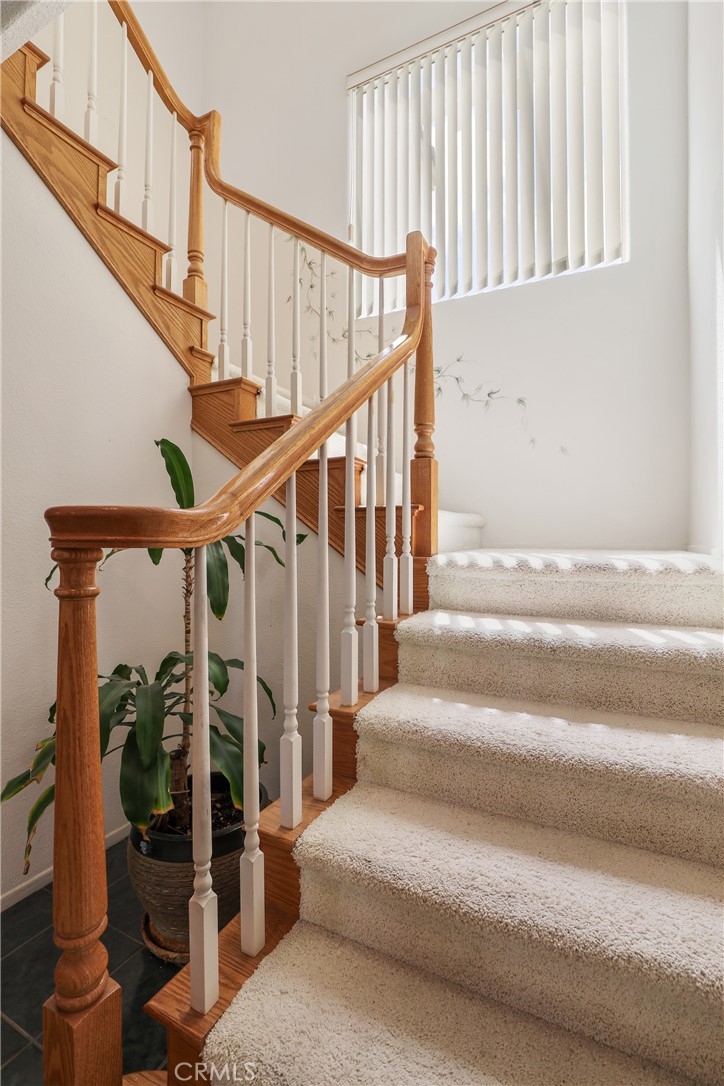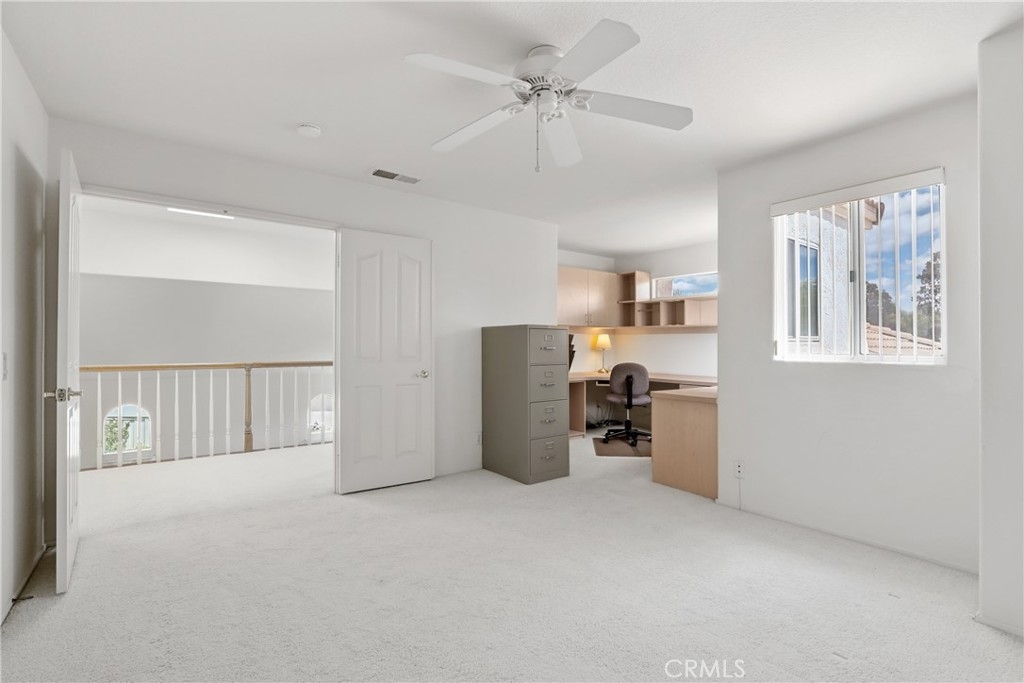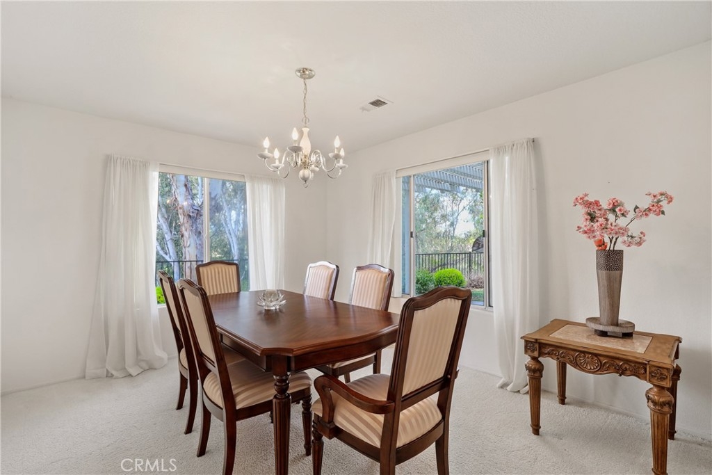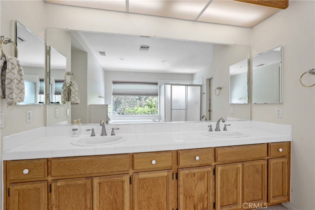 Welcome to this largest Colony floorplan featuring 2 PRIMARY BEDROOMS in The Colony, Murrieta's finest gated community for ages 55+. An expansive entry courtyard with beautiful artificial turf and decorative plants leads to a spacious patio where you enter your front door. There is a living room with a fireplace and a formal dining room along with a casual eating area off the kitchen. One primary bedroom suite is downstairs with a sliding door to a very private patio, a walk-in closet and a bath with dual sinks and a large shower. Upstairs is a perfect private retreat for guests or a caretaker with another large bedroom, an office/3rd bedroom and another large bathroom with 2 sinks, large soaking tub and a shower. Views of the golf course across the street can be enjoyed from your yard and from the balcony off the upstairs bedroom. The downstairs also features a guest half bath and an indoor laundry room with a convenient sink. The garage has room for 2 cars + lots of built-in cabinets. This home sits at the end of a cul-de-sac, high above the street behind it and provides many impressive views. You will love The Colony lifestyle with our FIRST-CLASS RESORT LEVEL CLUBHOUSE featuring a year-round pool, 2 spas, outdoor patios, lighted pickle ball/paddle tennis and tennis courts. Enjoy the gym, library, billiards room with cards, groups & activities for every interest. The huge auditorium hosts shows, concerts, dances, movies, banquets & parties for all occasions. The HOA waters & maintains all front yards. Guard gated entry with 24-hour security patrol for your peace of mind. A privately owned 18 hole golf course is inside the gate. Close to restaurants, shopping, medical, wineries and casinos. Call today so you can start to enjoy TRUE RESORT-STYLE SENIOR LIVING for those age 55 and better.