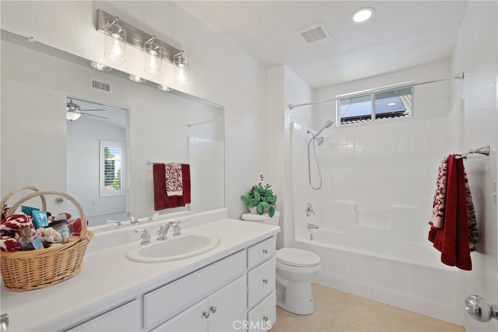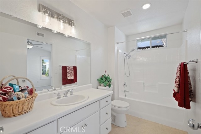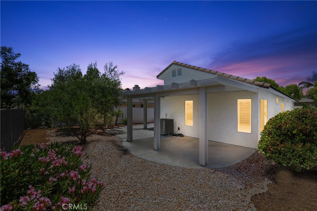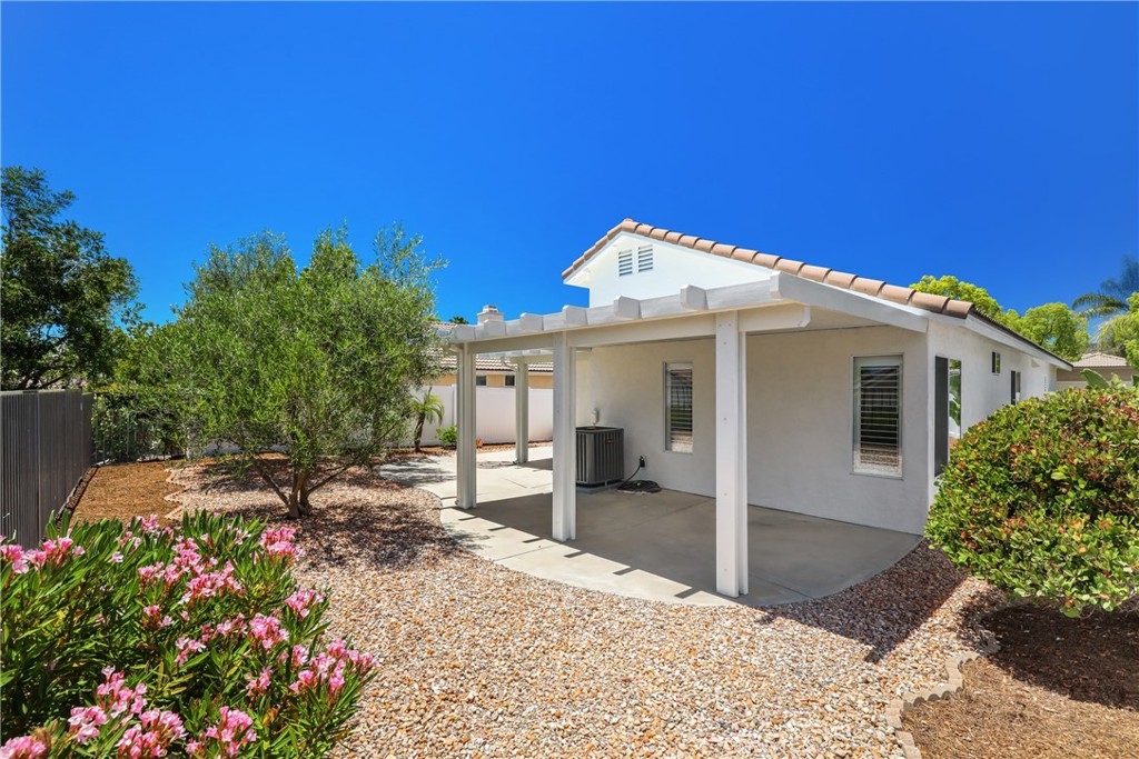 *YOUR DREAM COTTAGE* in "THE COLONY", Murrieta's premier 55+ guard-gated community. This completely REFURBISHED 2 bedroom, 1 bath home shows like a model. WITH SO MANY IMPROVEMENTS DONE YOU CAN COMFORTABLY SETTLE-INTO YOUR NEW HOME WHILE AVOIDING THE TIME-CONSUMING AND OFTEN STRESSFUL RENOVATION PROCESS WITH UNCERTAIN CASH-OUT-OF-YOUR-POCKET. The floor plan is open and inviting with high ceilings adding a feeling of spaciousness. Enjoy the freshly painted "Greek Villa" white interior, allowing you to add your favorite decor colors and furnishings. The living room has a cozy fireplace, new ceiling fan and is open to the dining room & kitchen. French door leads to a side patio and rear yard with a large Alumawood patio to entertain your guests. BEAUTIFUL NEWER PLANTATION SHUTTERS THROUGH-OUT. Generously-sized Primary bedroom has vaulted ceilings, new carpeting, new ceiling fan, a walk-in closet and lots of natural light. Second bedroom has new carpeting, with double French doors leading to your relaxing PRIVATE PATIO. This room provides a view of your garden & greenbelt that adds privacy from rear neighbors. The refurbished bathroom has several updated features. The newly refurbished kitchen has ample workspace with refinished cabinetry, breakfast bar and new microwave. There is a window above the sink looking-out to the relaxing front porch. The new farm-style sink has a semi-pro faucet & new disposal. The S/S refrigerator is included in the sale. The kitchen provides direct access to an over-sized one-car garage with washer/dryer, included in the sale. THE EXTERIOR OF THIS HOME IS GORGEOUS HAVING BEEN BEEN FRESHLY PAINTED, NEW VINYL FENCING, REFURBISHED LANDSCAPING INCLUDING FLOWER/GARDEN BEDS WITH NEW WEED BARRIER, FRESH MULCH AND REFRESHED CRUSHED STONE. This is a low maintenance yard. The home recently received a NEW AMANA HEATING AND AIR CONDITIONING SYSTEM with a media filter for improved indoor air quality. HOA maintains/waters front lawns. GUARD-GATED COMMUNITY & 24 HR SECURITY offers PEACE OF MIND. Amazing clubhouse with pool, spas, lighted tennis & pickleball/paddleball courts, Bocce ball, card room, HAIR SALON, billards, library & gym. Large auditorium for dances, movies, plays, musical productions & club activities. Privately owned 18 hole GOLF COURSE is within The Colony gates. Membership in the HOA does not include golf privileges. PAMPER YOURSELF & ENJOY THE RESORT STYLE LIVING YOU DESERVE!