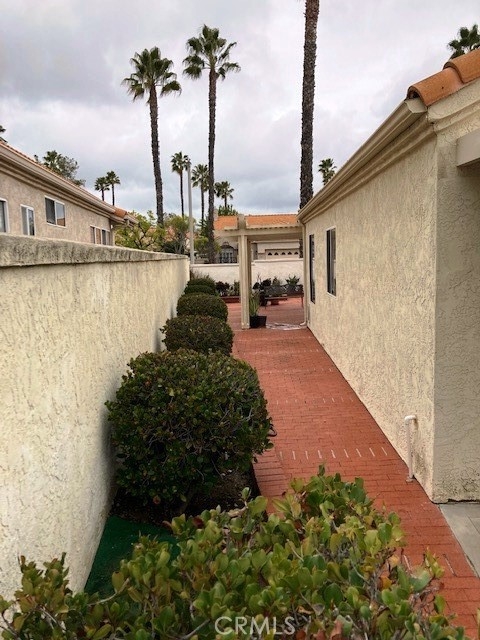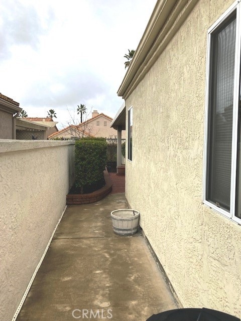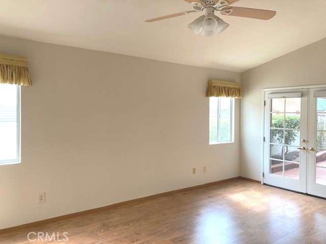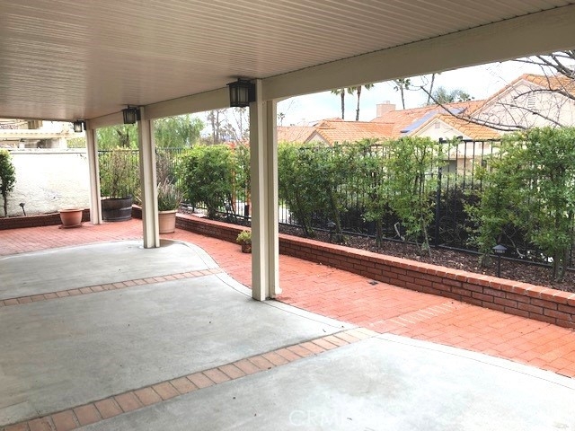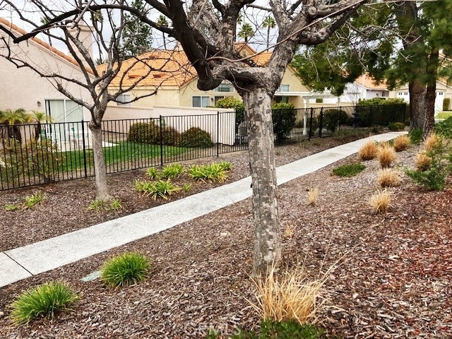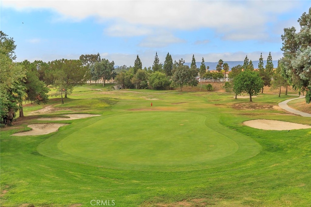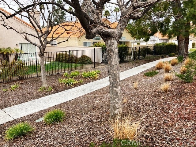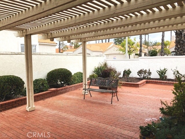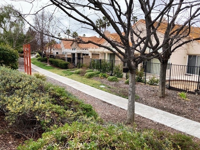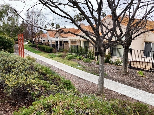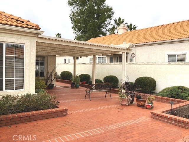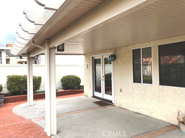 FRESH PAINT is featured in this beautiful home in The Colony, one of SoCal's finest 55+ GATED SENIOR COMMUNITIES. A large brick entry courtyard welcomes you to the home, a perfect place to enjoy quiet mornings. You will love the soaring ceilings and lovely laminate flooring in this popular plan with a spacious living room overlooking the back patio. There is a formal dining room with French doors and built in display shelving. The kitchen has granite countertops and tile flooring and opens to a casual dining area. The primary suite has French doors leading to a private patio area plus a walk-in closet and dual sinks in the bath. Bedroom 2 has a desk built in the closet area, but it could easily convert back to a closet. You will love the privacy on your patio with an easy-care alumawood patio cover, brick accents and a view to a GREENBELT and walking path. There is a whole house fan for comfort and savings in warm weather. There are clean walkways all around the home and NO wood fencing. The Colony is a RESORT CLASS SENIOR COMMUNITY with a PREMIER CLUBHOUSE, heated pool, 2 spas, lighted pickle ball/paddle tennis & tennis. You can enjoy the gym, library, ping pong, billiards, hair/nail salon. There are groups & activities for a variety of interests with an auditorium for shows, dances, concerts, movies, bingo & parties for all occasions. A privately owned 18-hole golf course is inside the gate. HOA waters & maintains all front landscaping. Guard gated entry & 24-hour security patrol. Call today to enjoy TRUE RESORT STYLE SENIOR LIVING on a quiet interior street in a welcoming & friendly community.