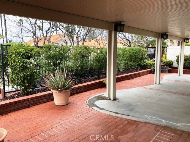 FRESH PAINT is featured in this beautiful home in The Colony, one of SoCal's finest 55+ GATED SENIOR COMMUNITIES. A large brick entry courtyard welcomes you to the home, a perfect place to enjoy quiet mornings. You will love the soaring ceilings and lovely laminate flooring in this popular plan with a spacious living room overlooking the back patio. There is a formal dining room with French doors and built in display shelving. The kitchen has granite countertops and tile flooring and opens to a casual dining area. The primary suite has French doors leading to a private patio area plus a walk-in closet and dual sinks in the bath. Bedroom 2 has a desk built in the closet area, but it could easily convert back to a closet. You will love the privacy on your patio with an easy-care alumawood patio cover, brick accents and a view to a GREENBELT and walking path. There is a whole house fan for comfort and savings in warm weather. There are clean walkways all around the home and NO wood fencing. The Colony is a RESORT CLASS SENIOR COMMUNITY with a PREMIER CLUBHOUSE, heated pool, 2 spas, lighted pickle ball/paddle tennis & tennis. You can enjoy the gym, library, ping pong, billiards, hair/nail salon. There are groups & activities for a variety of interests with an auditorium for shows, dances, concerts, movies, bingo & parties for all occasions. A privately owned 18-hole golf course is inside the gate. HOA waters & maintains all front landscaping. Guard gated entry & 24-hour security patrol. Call today to enjoy TRUE RESORT STYLE SENIOR LIVING on a quiet interior street in a welcoming & friendly community.
