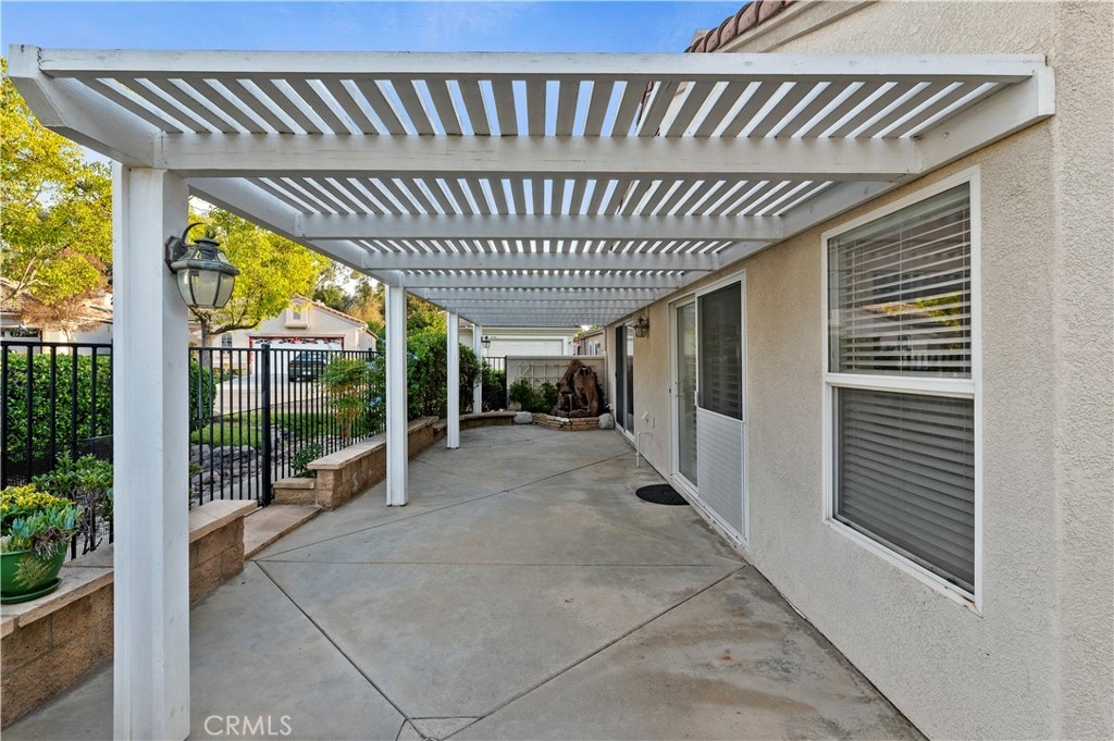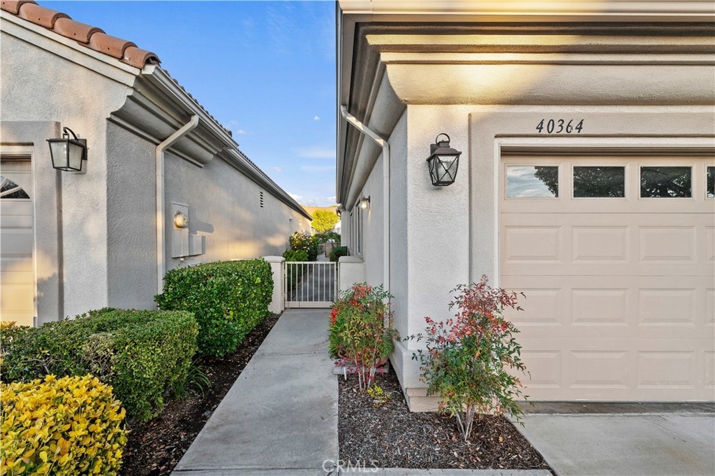 You will love the CORNER LOCATION of this popular single-story home in The Colony, one of SoCal's best GATED SENIOR COMMUNITIES. Inviting landscaping welcomes you to this very private location with only one neighbor. This well-designed home features the possibility of 2 PRIMARY SUITES. There is an open concept great room for living / dining and a sliding door with plantation shutters leads to the patio. The well-designed kitchen offers bar seating & a new stainless steel oven/microwave. The primary suite features a large bedroom with a walk-in closet, a sumptuous bath with dual sinks, soaking tub and a large shower. Bedroom 2 is oversized with plenty of room for a bedroom set plus a sitting area or desk and has direct access to the guest bath, making it ideal for a second primary bedroom. Bedroom 3 is a den/office with no closet. Your inviting oasis patio with a built-in BBQ, waterfall, stone planters and lush landscaping creates a peaceful backdrop for outdoor relaxation. The indoor laundry has a convenient sink, lots of cabinets and the washer & dryer are included. The garage offers ample storage with lots of built-in cabinets and room for 2 cars + a golf cart.