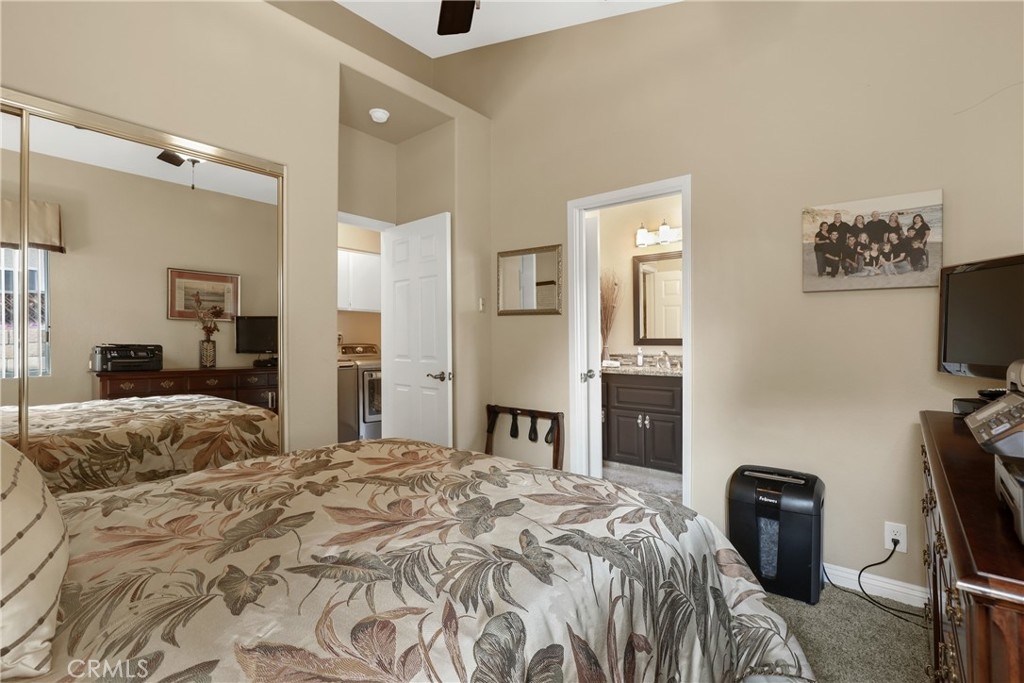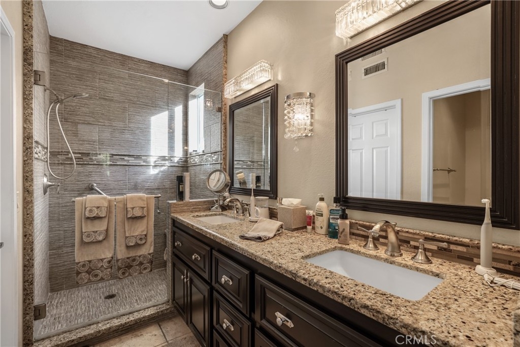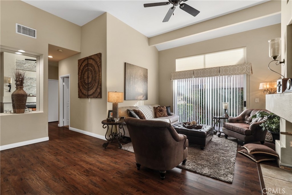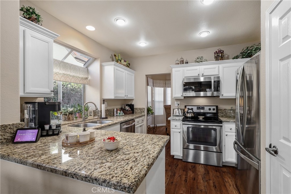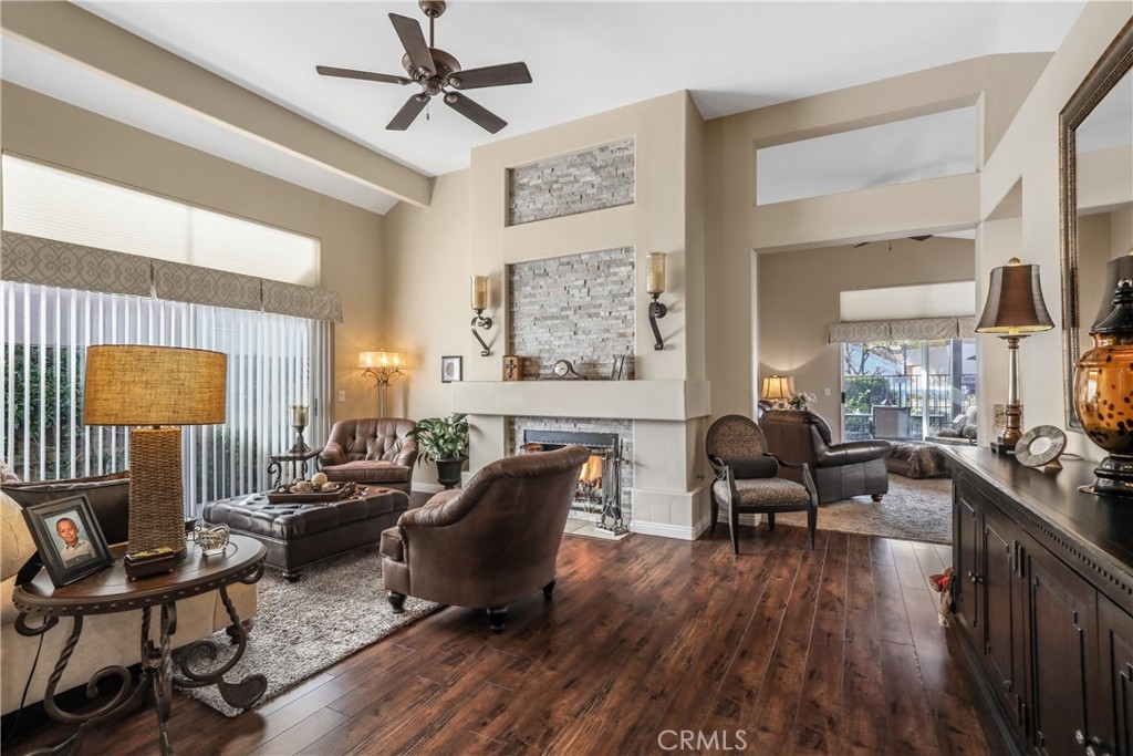 UPGRADES EVERYWHERE!! You will love this stunning home, professionally decorated with quality features throughout, located in one of SoCal's finest 55+ senior gated communities. This home features an open floor plan with separate formal dining, living and family rooms, 2 bedrooms & 2 BEAUTIFUL UPDATED BATHROOMS. The STACKED STONE FIREPLACE is the focal point of the living room, set off by rich wood flooring & soaring ceilings. You will appreciate the tasteful decorator light fixtures, wide baseboards & custom window treatments. The kitchen features granite counters, white cabinets, stainless steel appliances and a convenient pantry. The private primary suite has a custom tiled walk-in shower with seating area, rimless glass door, upgraded vanity and a "California style" walk-in closet. The guest bedroom has another spectacular updated bath nearby. Your entry features a gated courtyard with tile finish. Relax in your secluded backyard with an ALUMINUM PATIO COVER that extends the entire length of the house and overlooks an HOA-maintained greenbelt. Beautiful greenery and flowering plants make the yard a private oasis. The 2-car garage features a side workshop area with lots of storage cabinets & finished walls. The Colony is a PREMIER GATED SENIOR COMMUNITY with a RESORT CLASS CLUBHOUSE, year-round pool, 2 spas, lighted pickle ball/paddle tennis and tennis courts. This home is located near the clubhouse so you can enjoy features like the gym, library, ping pong, billiards, hair/nail salon. There are groups & activities for all interests with an auditorium for shows, dances, banquets, concerts, movies, bingo & parties for all occasions. A privately owned 18-hole golf course is inside the gate. The HOA waters & maintains all front landscaping. Guard gated entry and 24-hour security patrol give you security &peace of mind. Close to stores, restaurants, medical, casinos and wineries. You will love the friendly neighbors and sense of community as you enjoy TRUE RESORT STYLE SENIOR LIVING in The Colony.