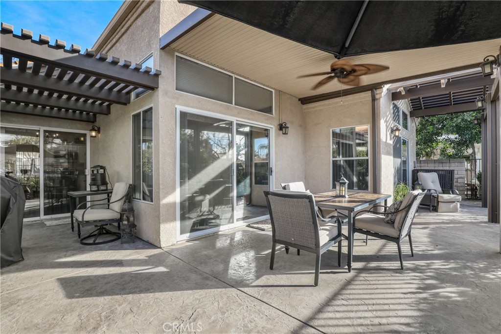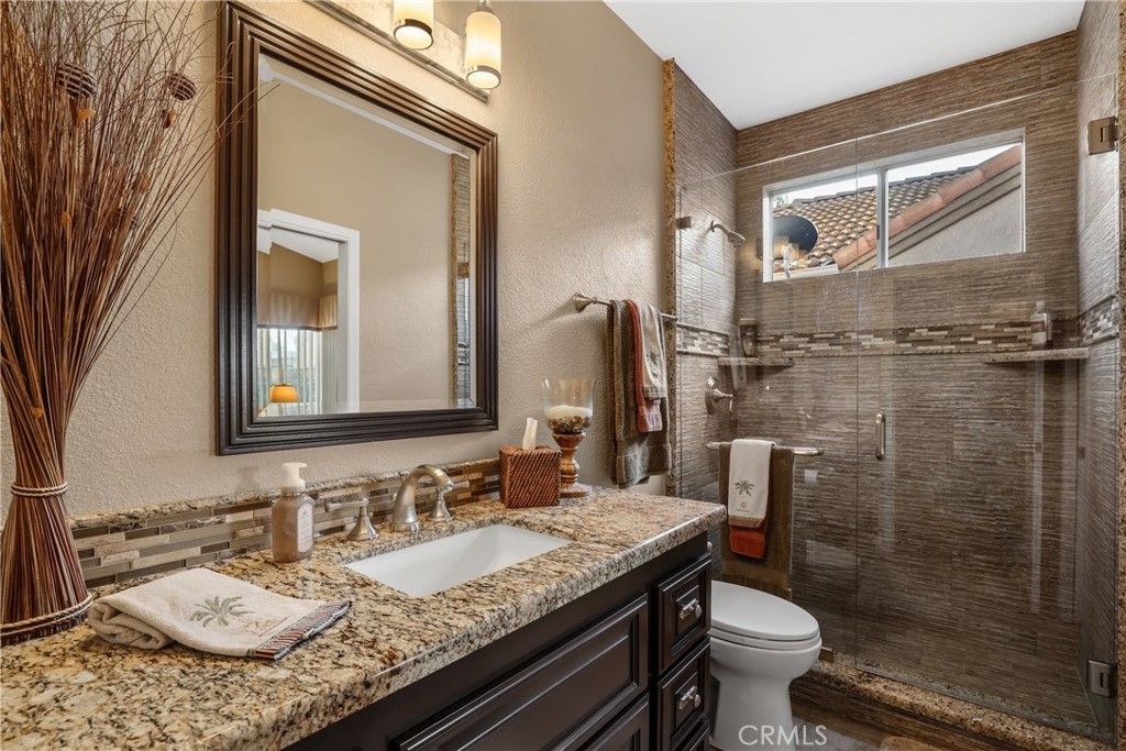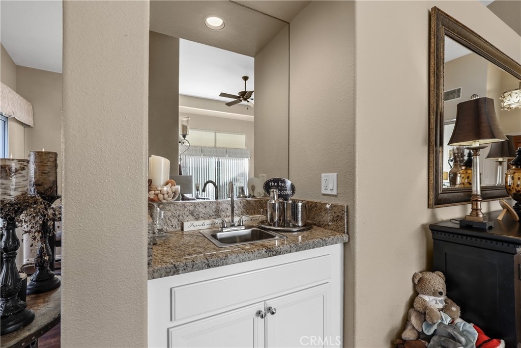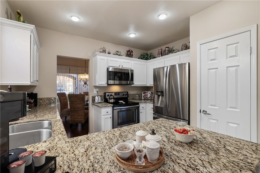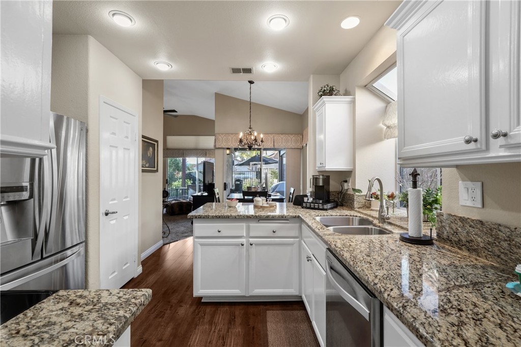 UPGRADES EVERYWHERE!! You will love this stunning home, professionally decorated with quality features throughout, located in one of SoCal's finest 55+ senior gated communities. This home features an open floor plan with separate formal dining, living and family rooms, 2 bedrooms & 2 BEAUTIFUL UPDATED BATHROOMS. The STACKED STONE FIREPLACE is the focal point of the living room, set off by rich wood flooring & soaring ceilings. You will appreciate the tasteful decorator light fixtures, wide baseboards & custom window treatments. The kitchen features granite counters, white cabinets, stainless steel appliances and a convenient pantry. The private primary suite has a custom tiled walk-in shower with seating area, rimless glass door, upgraded vanity and a "California style" walk-in closet. The guest bedroom has another spectacular updated bath nearby. Your entry features a gated courtyard with tile finish. Relax in your secluded backyard with an ALUMINUM PATIO COVER that extends the entire length of the house and overlooks an HOA-maintained greenbelt. Beautiful greenery and flowering plants make the yard a private oasis. The 2-car garage features a side workshop area with lots of storage cabinets & finished walls. The Colony is a PREMIER GATED SENIOR COMMUNITY with a RESORT CLASS CLUBHOUSE, year-round pool, 2 spas, lighted pickle ball/paddle tennis and tennis courts. This home is located near the clubhouse so you can enjoy features like the gym, library, ping pong, billiards, hair/nail salon. There are groups & activities for all interests with an auditorium for shows, dances, banquets, concerts, movies, bingo & parties for all occasions. A privately owned 18-hole golf course is inside the gate. The HOA waters & maintains all front landscaping. Guard gated entry and 24-hour security patrol give you security &peace of mind. Close to stores, restaurants, medical, casinos and wineries. You will love the friendly neighbors and sense of community as you enjoy TRUE RESORT STYLE SENIOR LIVING in The Colony.