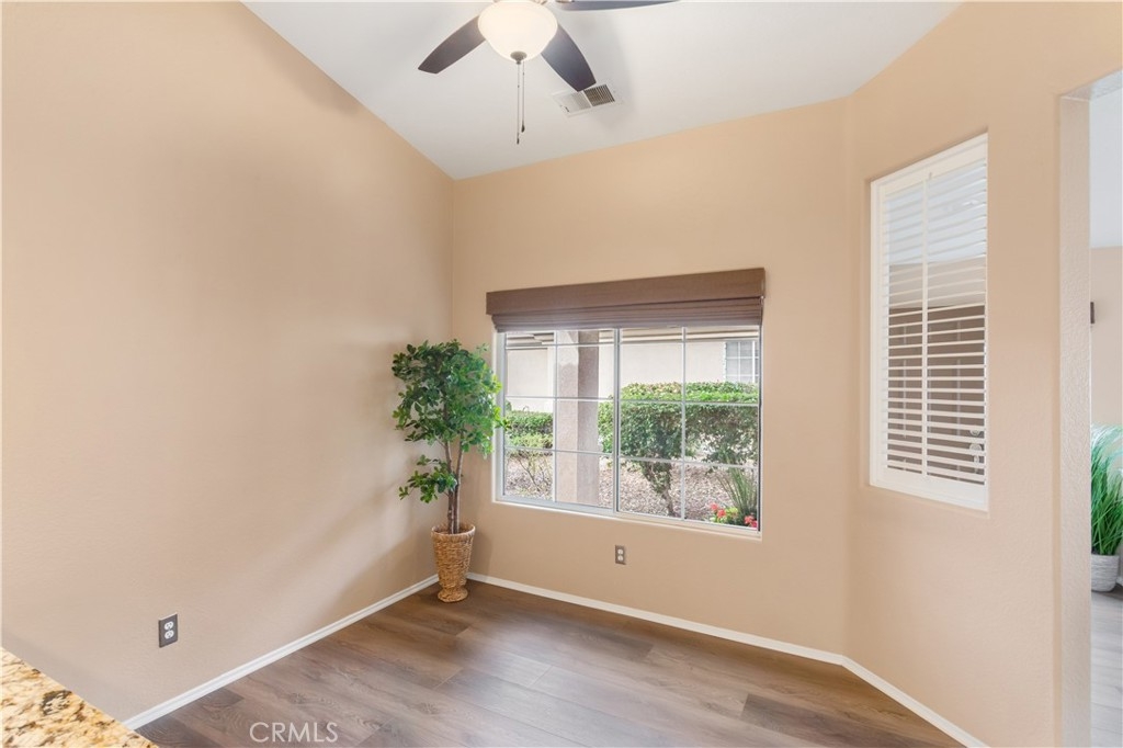 Beautiful Single Story Home in The Colony One of Southern California’s Most Vibrant and Sought-After 55+ Active Adult Communities. This Stylish Home is Filled w/Natural Light & Neutral Colors, Ideal for Everyday Living. Upgrades Include, LAMINATE FLOORING, Upgraded GRANITE COUNTERTOPS in Both Kitchen and Baths, Neutral Paint, CUSTOM WINDOW TREATMENTS, SOLID-COVER ALUMAWOOD Patio Cover & Concrete Patio That Wraps Around the Back of Home. This Home Offers One of The Best Well Planned Layouts in The Colony! The Kitchen Features Beautiful White Cabinetry, Dedicated Pantry Area for Additional Storage, Counter Bar to Accommodate Casual Dining or Entertaining & Direct Garage Access from Kitchen Adding Everyday Convenience for Unloading Groceries Quickly and Effortlessly. The Dining Area is Conveniently Just Off Kitchen Featuring a Ceiling Fan & Large Window That Fills the Space with Natural Light and Flows Seamlessly into Family Room with Cozy Fireplace and Media Niche Creating an Open and Inviting Layout. The Primary Bedroom is a Private Retreat Featuring a Spacious Walk-In Closet and En-Suite Bathroom. The Primary Bathroom is Appointed with Granite Countertops & Large Walk-In Shower. The Second Bedroom Offers Plenty of Space and is Conveniently Located Next to 2nd Bathroom That Offers Shower, Tub & Granite Countertops. The Private Backyard is Designed for Easy Enjoyment and Low Maintenance w/Solid Alumawood Patio Cover Providing Year-Round Shade & Comfort. The Concrete Patio Offers Space for Outdoor Dining, Relaxing or Entertaining. There is Plenty of Space for Planting Your Own Garden or Flowers w/Drip System in Place. A Sliding Glass Door Gives Easy Access to Yard from Living Room and is a Perfect Place for Peaceful Retreats, Cozy Morning Coffee or Evening Gatherings with Minimal Upkeep. The Colony Offers Prime Resort Style 55+ Living Featuring a Guard Gated Entry, Clubhouse, Fitness Center, Pool, Spa, Tennis, Pickleball Courts, Bocce Ball, Shuffleboard, Salon, Game Room, Meeting Room, Dining Area, Billiard Room and MORE! The Welcoming Atmosphere, Outstanding Amenities, Active Social Calendar, and Nearby Golf Course Make This a Perfect Backdrop for Your Next Home. Located Near Shopping, Dining and Medical Facilities with Easy Freeway Access Just Minutes Away. Come See Why This Home and Community is a Wonderful Opportunity to Enjoy a Relaxed Active-Adult Living in One of Murrieta’s Most Sought-After Communities.