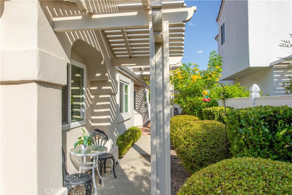 BACK ON THE MARKET AT NO FAULT OF SELLERS OR HOME**** GORGEOUS*** home in the Highly desirable 55+ community of the Colony! This beautiful home boasts of elegance, character and amazing upgrades throughout. Beautiful Plantation Shutters and upgraded dual-pain windows throughout the entire house! Kitchen has newer granite counters, beautiful white cabinets, gorgeous kitchen ceiling. The living room boasts of beautiful built in shelving, upgraded tile work on the fireplace, beautiful French doors leading to a magnificent semi private patio. Over $3,000 invested on the meticulously selected trees to provide privacy, beauty and a serene ambient. Master bedroom is very spacious with French doors that give full access to the patio while providing wonderful natural light. The master bathroom is gorgeous, with high-end wood vanity! The 2nd bedroom has a beautiful built in Murphy bed and a beautiful custom built desk. The garage has wonderful storage space, with built in desk, epoxy floors and so much more!